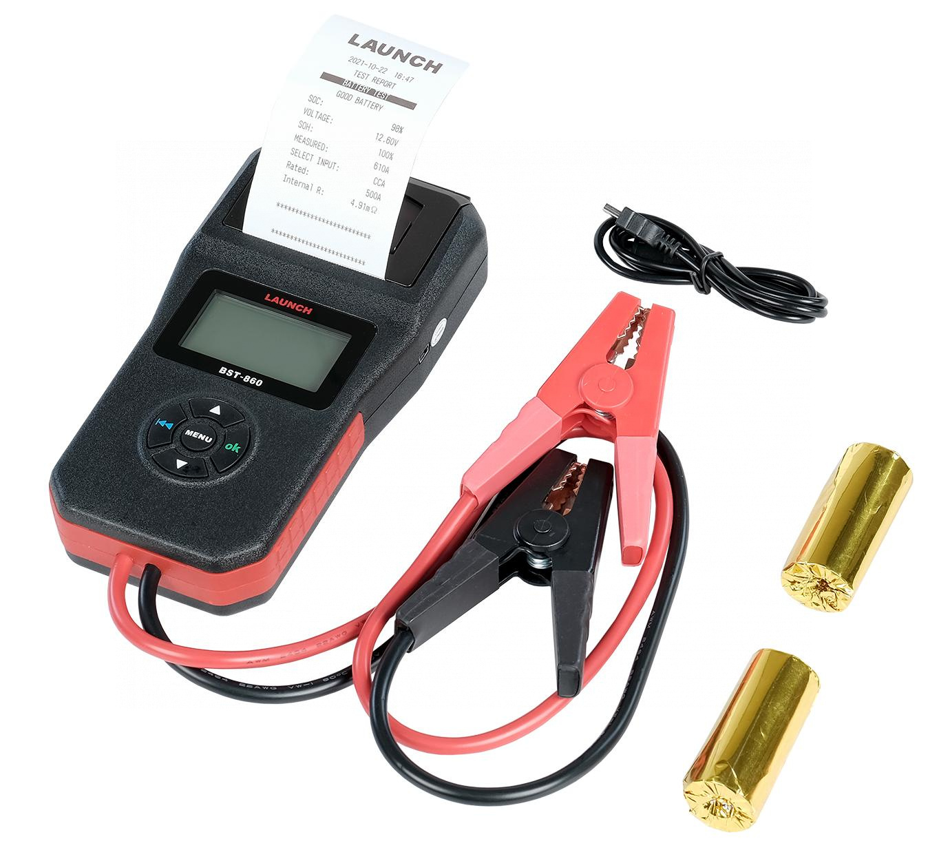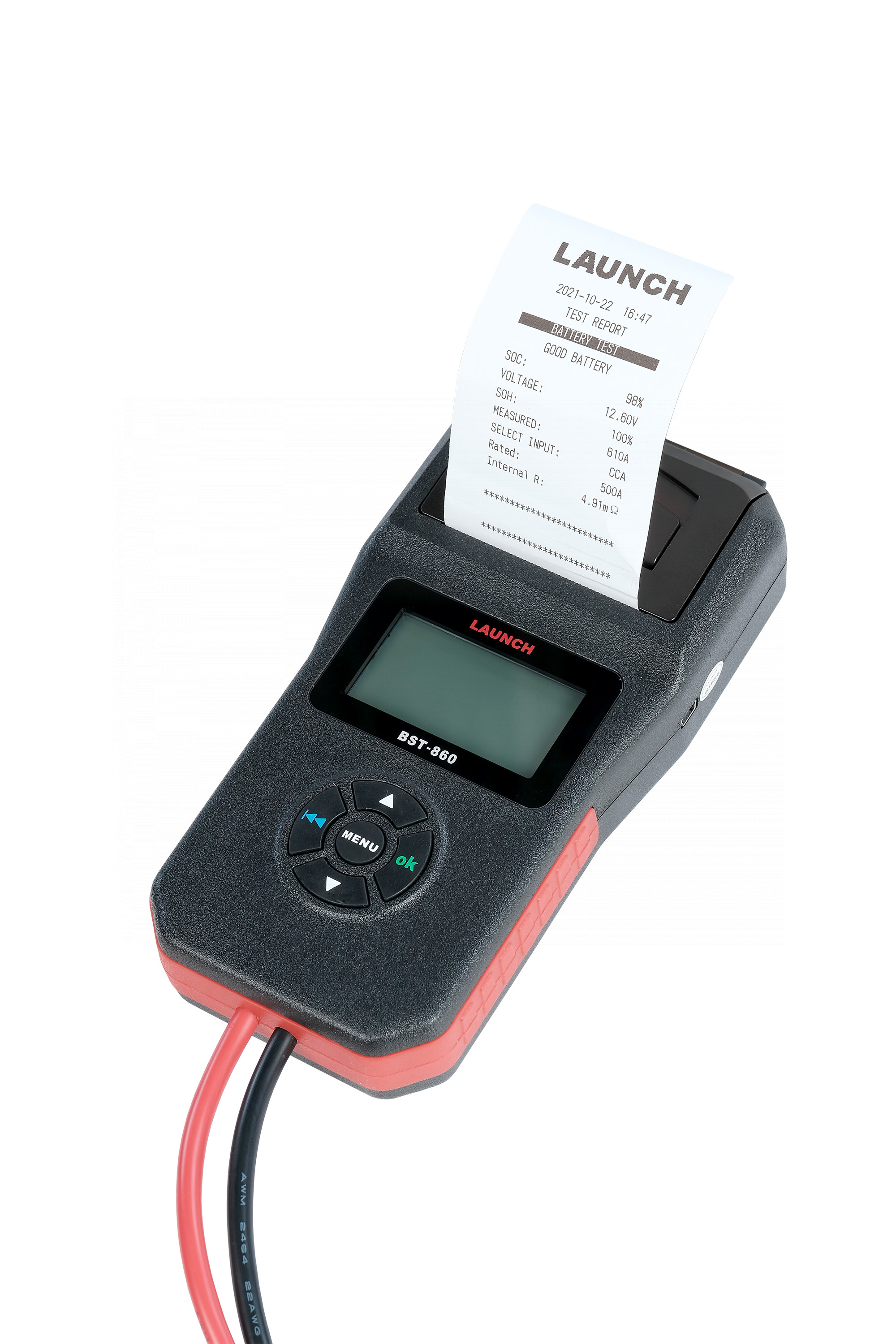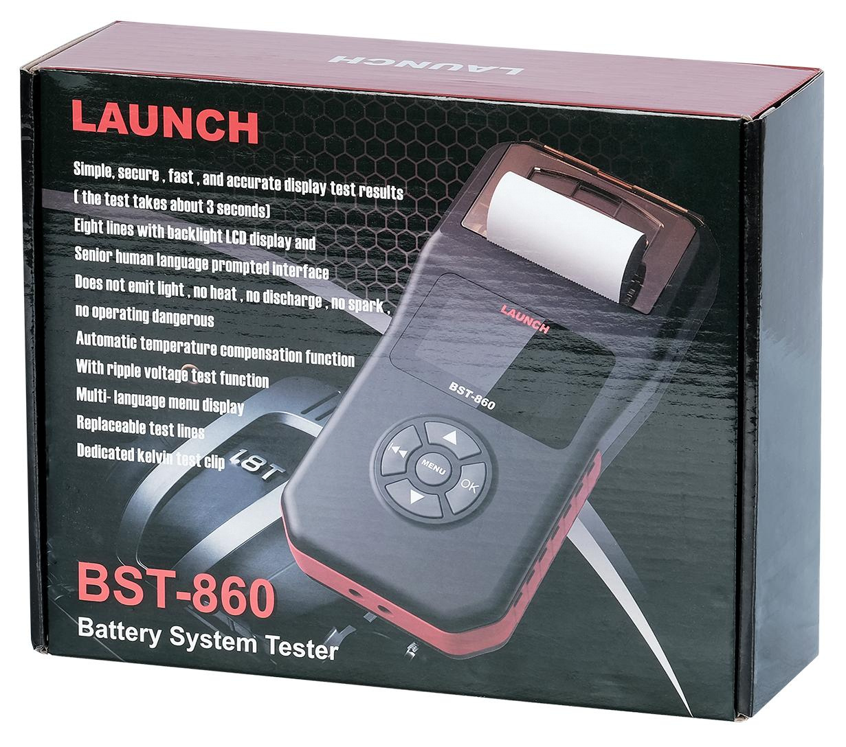 О товаре Тестер аккумуляторных батарей Launch BST-860 N37742 - многофункциональный тестер для проверки уровня заряда и состояния аккумуляторных батарей с напряжением 6В, 12В и 24В. С его помощью вы сможете проверить не только состояние АКБ, а так-же системы пуска и заряда автомобилей и другой техники. Быстрые и точные тестовые результаты всего за несколько секунд, прибор четко определит, исправен ли АКБ, либо требуется его замена. Тестер аккумуляторных батарей поддерживает 6 тестовых режимов: тест силы тока, тест напряжения, тест АКБ (Battery test), тест системы запуска двигателя (Cranking test), тест системы зарядки АКБ (Charging test), тест пульсаций напряжения (Ripple test). Полученные результаты вы можете распечатать с помощью встроенного термопринтера. Особенности: Работа с АКБ различных типов: свинцово-кислотных, гелевых и AMG на 6, 12 и 24 В, Встроенный термопринтер, предназначен для печати тестовых отчетов на стандартной бумаге шириной 57 мм, Меню имеет 5 языковых раскладок, включая русскую, Поддержка наиболее часто используемых режимов измерения, Возможность передачи и копирования тестовых отчетов и сервисных записей посредством USB. Показать полностью Скрыть Характеристики Экран 6-строчный LCD-экран с подсветкой Язык меню Английский, немецкий, итальянский, французский, польский, русский Длина тестового кабеля 80 см Рабочая температура -18 ~ 50 °C Типы АКБ 6 / 12 / 24 В, свинцово-кислотные, гелевые, AGM (Absorbent Glass Mat) Габариты 188 x 95 x 41 мм Вес 450 г Материал корпуса Кислотоупорный ABS-пластик **Габариты и вес товара с упаковкой Общий вес с упаковкой - 0.9 кг Упаковка Размеры упаковки (Д*Ш*В), мм Вес, кг Упаковка №1 290 x 230 x 90 0.9 ** Теоретический вес