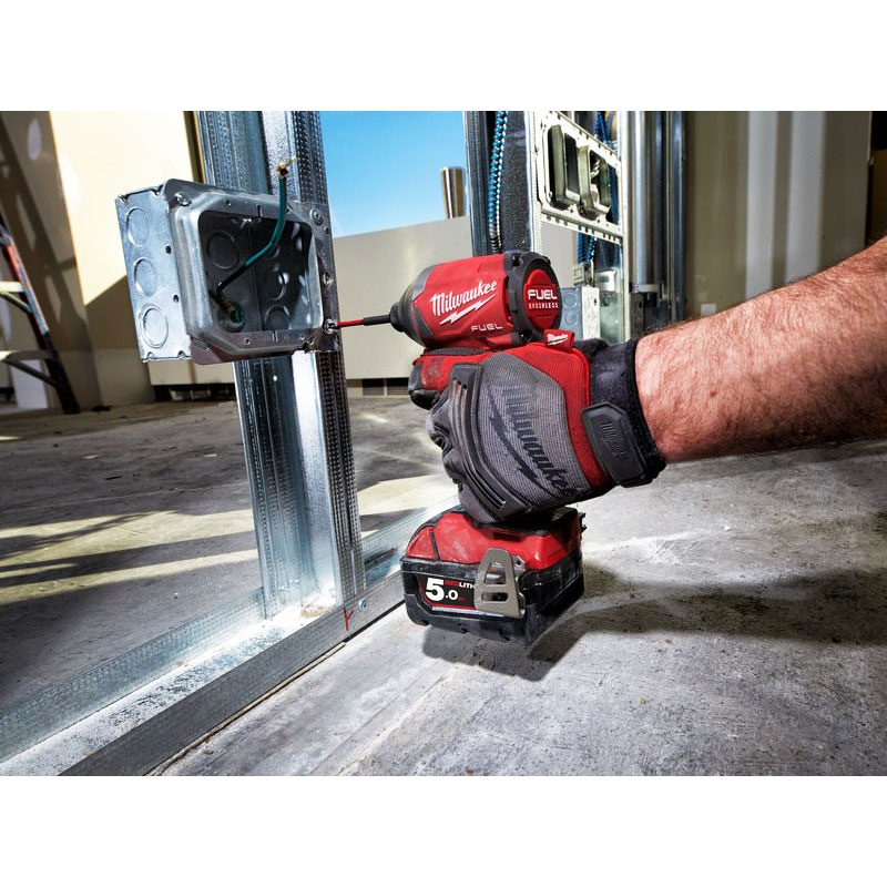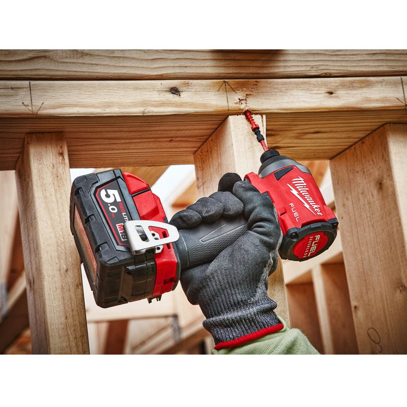 Импульсный винтоверт Milwaukee M18 FID2-502X поставляется с 2 аккумуляторами 5.0 Ач, турбозарядным устройством, с клипсой на ремень, битодержателем, в надежном HD кейсе.