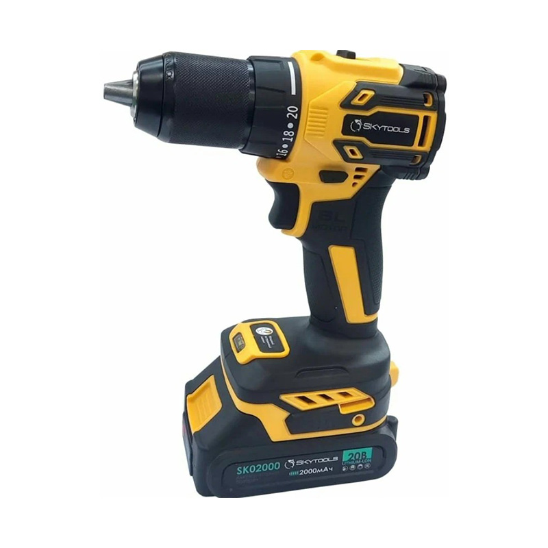 Аккумуляторная дрель-шуруповерт SK7005 - мощный и компактный инструмент, предназначенный для профессионального использования. Оснащен бесщёточным двигателем, что увеличивает эффективность и производительность инструмента. Корпус изготовлен из качественного и ударопрочного материала, хорошо сбалансирован, рукоятка и тыльная сторона имеют резиновые накладки. На нижней части, где крепиться батарея, расположен магнит для размещения на нем крепежа или оснастки. Металлическим быстрозажимной патроном 13 мм. 20 + 1 ступеней крутящего момента, и максимальный крутящий момент в 50 Нм. Две скорости, реверс, частота вращения шпинделя 0-500 / 0-1600 об/мин. Поставляется в комплекте с 2 - мя Li-ion аккумуляторами мощностью в 20В и ёмкостью в 2,0 Ач. Вес без аккумулятора составляет 1,02 кг.,с аккумулятором 2,0 Ач, 20В - составит 1,4 кг.