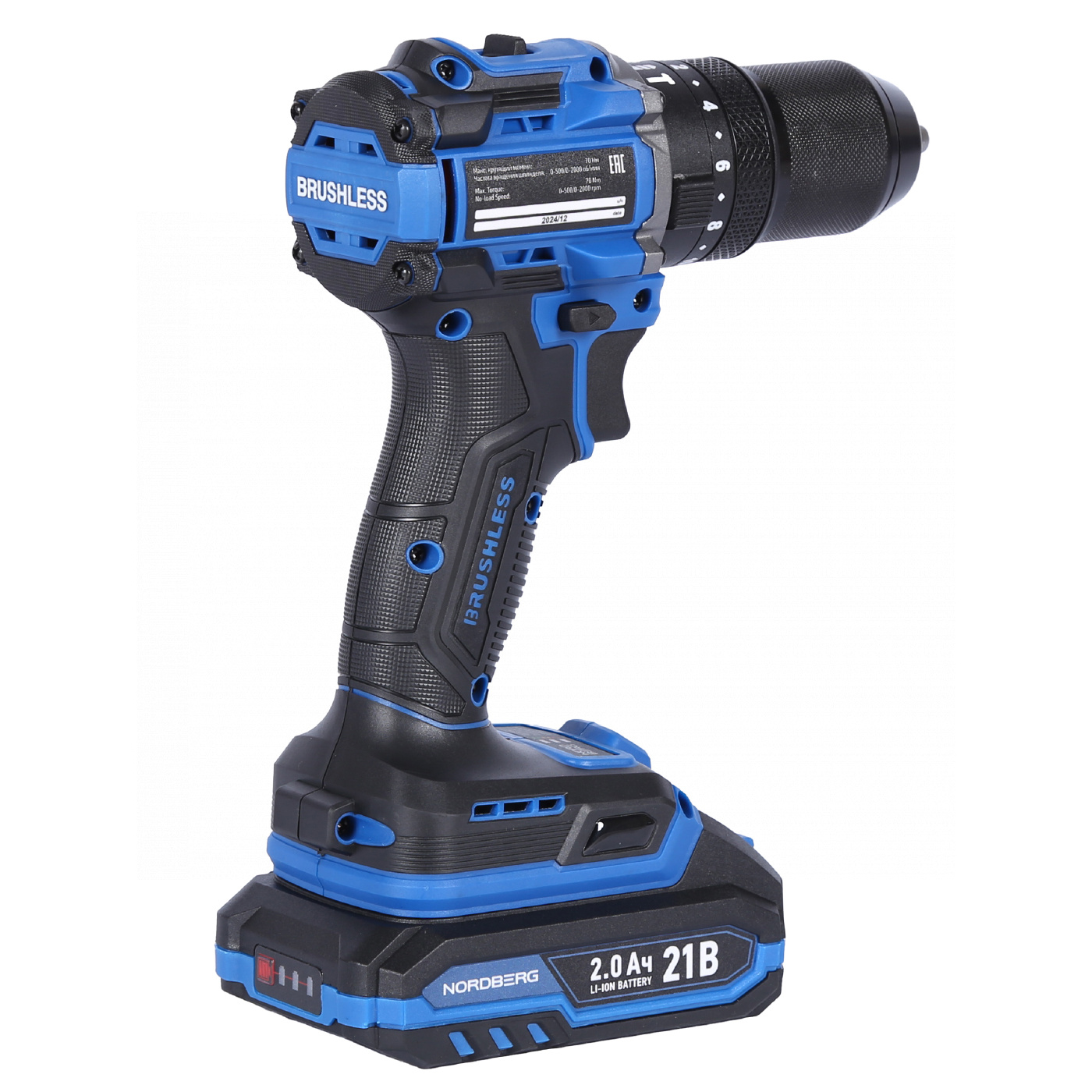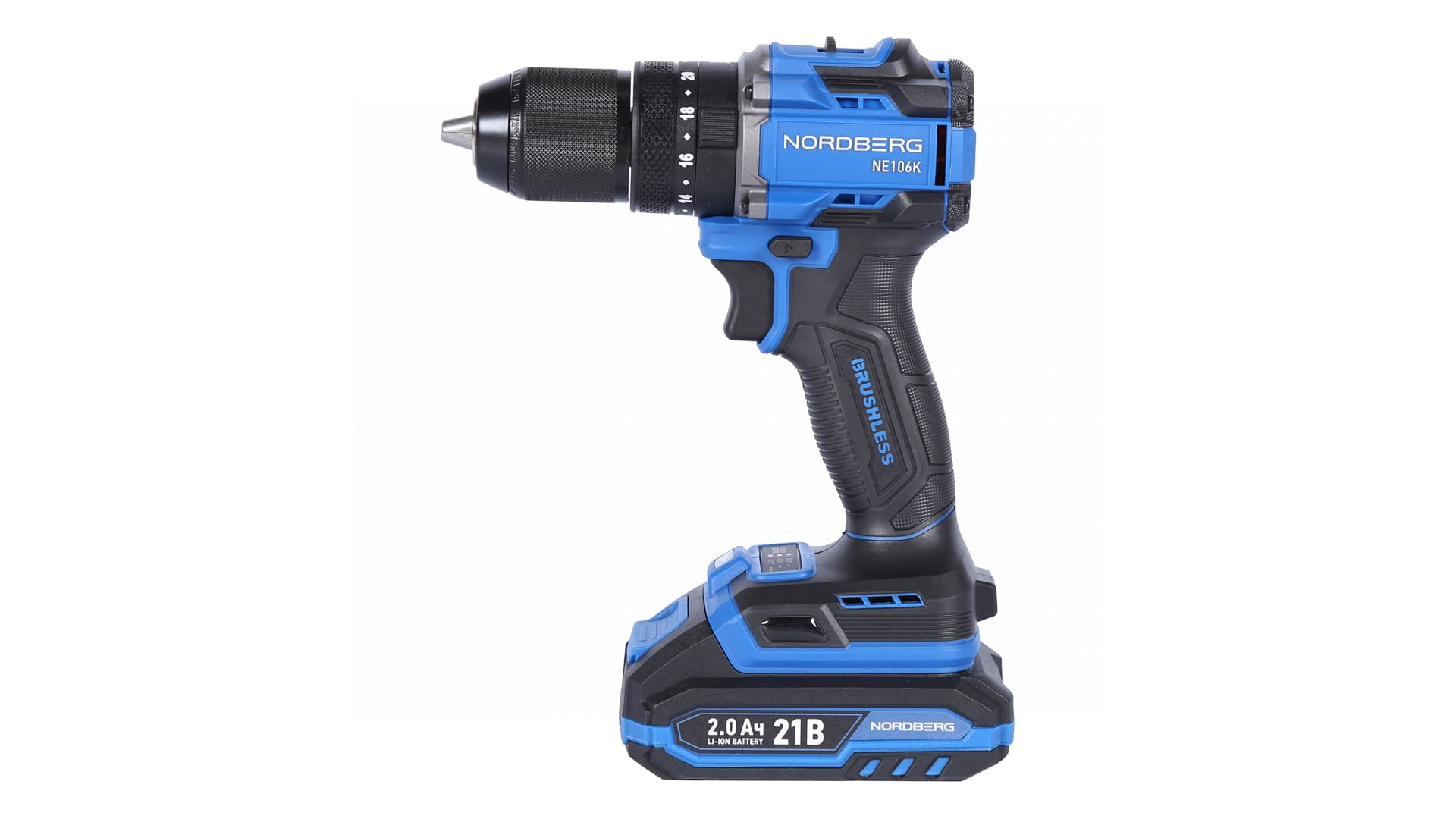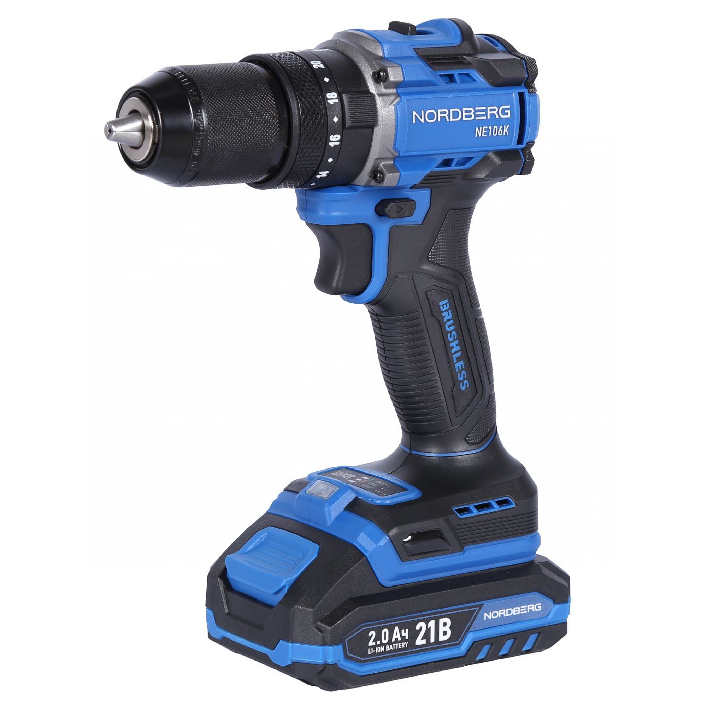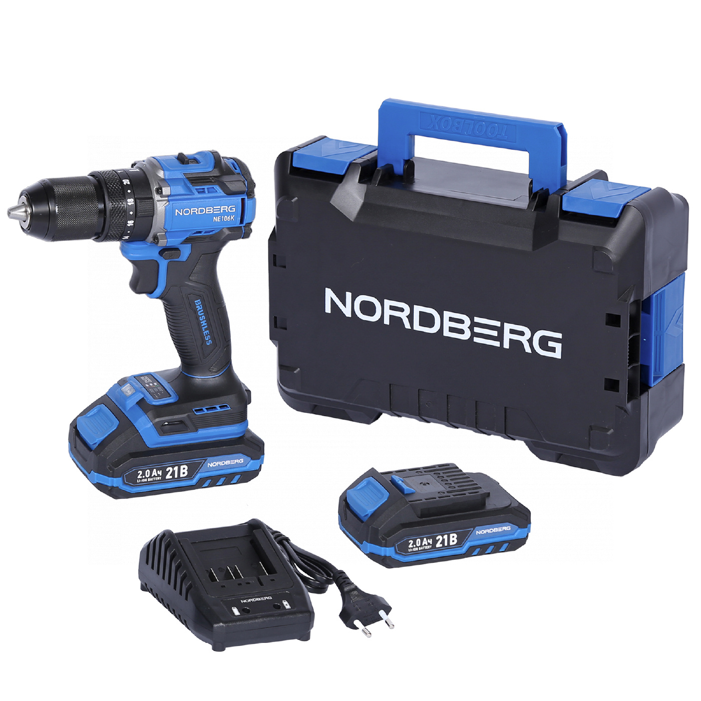 О товаре NORDBERG NE106K — аккумуляторный шуруповерт с высоким крутящим моментом. Используется в строительстве, ремонте и профессиональных мастерских. ФУНКЦИОНАЛ Предназначен для заворачивания и отворачивания винтов, шурупов, болтов, а также сверления отверстий в дереве, металле, пластике, керамике и бетоне. ПРЕИМУЩЕСТВА Крутящий момент – 70 Нм, что позволяет заворачивать шурупы и другой крепеж в материал высокой плотности, Двухскоростной режим 0–500 об/мин (I) / 0–2000 об/мин (II), для точного подбора скорости под разные задачи, Максимальный диаметр сверления 13 мм, подходит для работы с различными материалами, Два аккумулятора 21 В, 2 А·ч, увеличенное время работы без подзарядки, Бесщёточный мотор – увеличенный ресурс работы и сниженный нагрев, Быстрозажимной патрон – быстрая смена оснастки без дополнительных инструментов. УДОБСТВО ИСПОЛЬЗОВАНИЯ Удобный переключатель режимов скорости, Реверс и регулировка крутящего момента позволяют точно настраивать под разные типы крепежа, Компактный и легкий дизайн и прорезиненная рукоятка для комфортного хвата, LED-подсветка обеспечивает удобство работы при слабом освещении. КОМПЛЕКТАЦИЯ Шуруповерт – 1 шт, Аккумулятор 21 В / 2 А·ч – 2 шт, Зарядное устройство 21 В / 1,8 А – 1 шт, Инструкция по эксплуатации – 1 шт. NORDBERG NE106K — мощный, надежный и удобный в эксплуатации инструмент для профессионального и бытового использования. Показать полностью Скрыть Характеристики Максимальное усилие, Нм 70 Скорость свободного вращения, об/мин 2000 Количество скоростей 2 Размер патрона 13 Тип патрона быстрозажимной Наличие удара есть Подсветка есть Тип питания Li-ion аккумулятор Напряжение аккумулятора, В 21 Максимальная емкость аккумулятора, А·ч 2 Габариты, мм 165x75x23 Вес товара, кг 1,42 **Габариты и вес товара с упаковкой Общий вес с упаковкой - 3 кг Упаковка Размеры упаковки (Д*Ш*В), мм Вес, кг Упаковка №1 340 x 115 x 235 3 ** Теоретический вес