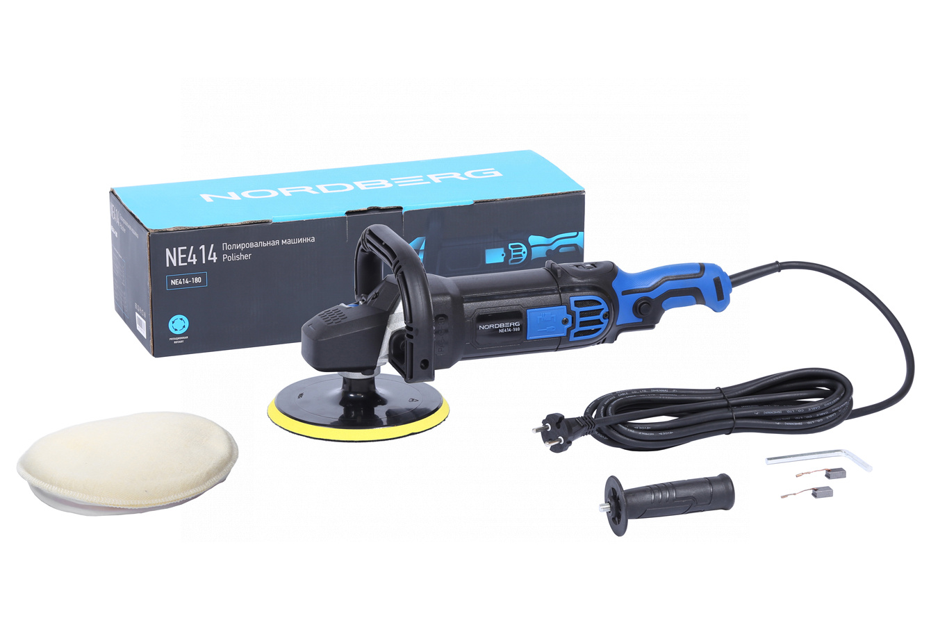 О товаре Полировальная машинка NORDBERG NE414-180 – электрический инструмент для выполнения профессиональных работ в автосервисах, студиях детейлинга и других предприятиях, занимающихся покраской. ФУНКЦИОНАЛ Предназначена для финишной полировки лакокрасочных покрытий автомобилей, а также для полировки различных материалов, таких как металл, пластик, дерево. ПРЕИМУЩЕСТВА И ОСОБЕННОСТИ Регулировка оборотов и поддержание оптимальной скорости оборотов под любой нагрузкой Кнопка-фиксатор позволяет удерживать курок для беспрерывной работы Быстрый доступ к смене щеток Пылезащитный фильтр Длина кабеля 5 метров Эргономичная прорезиненная рукоятка УДОБСТВО ИСПОЛЬЗОВАНИЯ Удобное использование благодаря простой конструкции и удобному дизайну. КОМПЛЕКТАЦИЯ полировальная шлифмашина подошва на липучке - 1 шт. рукоятка - 1 шт. шестигранный ключ - 1 шт. губка для полировки - 1 шт. угольная щетка - 1 комп. паспорт-инструкция Полировальная машинка NORDBERG NE414-180 подойдет для полировки различных материалов как в профессиональной сфере, так и в быту. Показать полностью Скрыть Характеристики Диаметр диска, мм 180 Скорость свободного вращения, об/мин 600 Максимальная скорость свободного вращения, об/мин 3000 Потребляемая мощность, Вт 1500 Крепление диска шпиндель Резьба шпинделя M14 Регулировка скоростей есть Длина кабеля, см 500 Напряжение, В 220 **Габариты и вес товара с упаковкой Общий вес с упаковкой - 4.026 кг Упаковка Размеры упаковки (Д*Ш*В), мм Вес, кг Упаковка №1 480 x 170 x 135 4.026 ** Теоретический вес