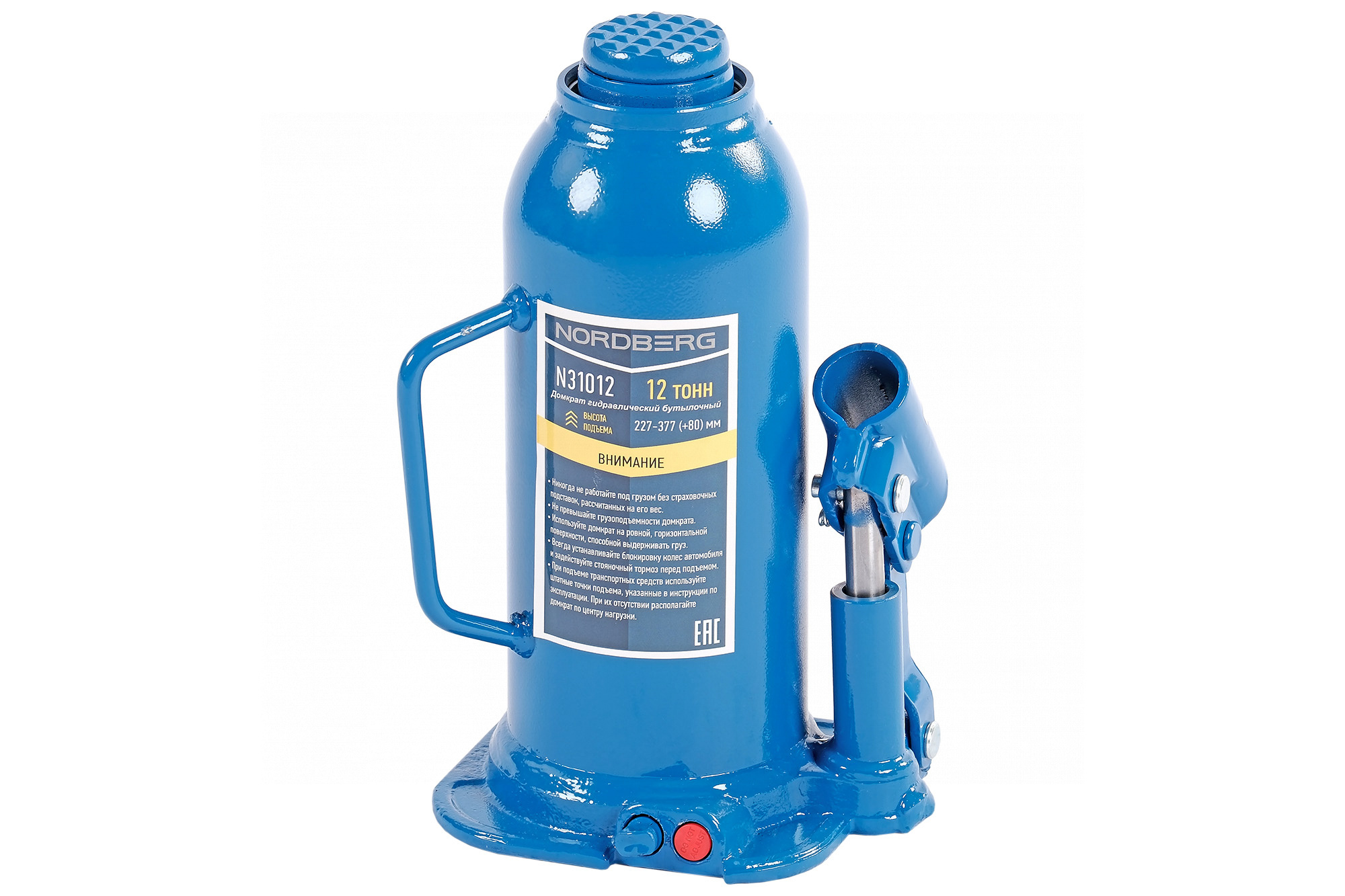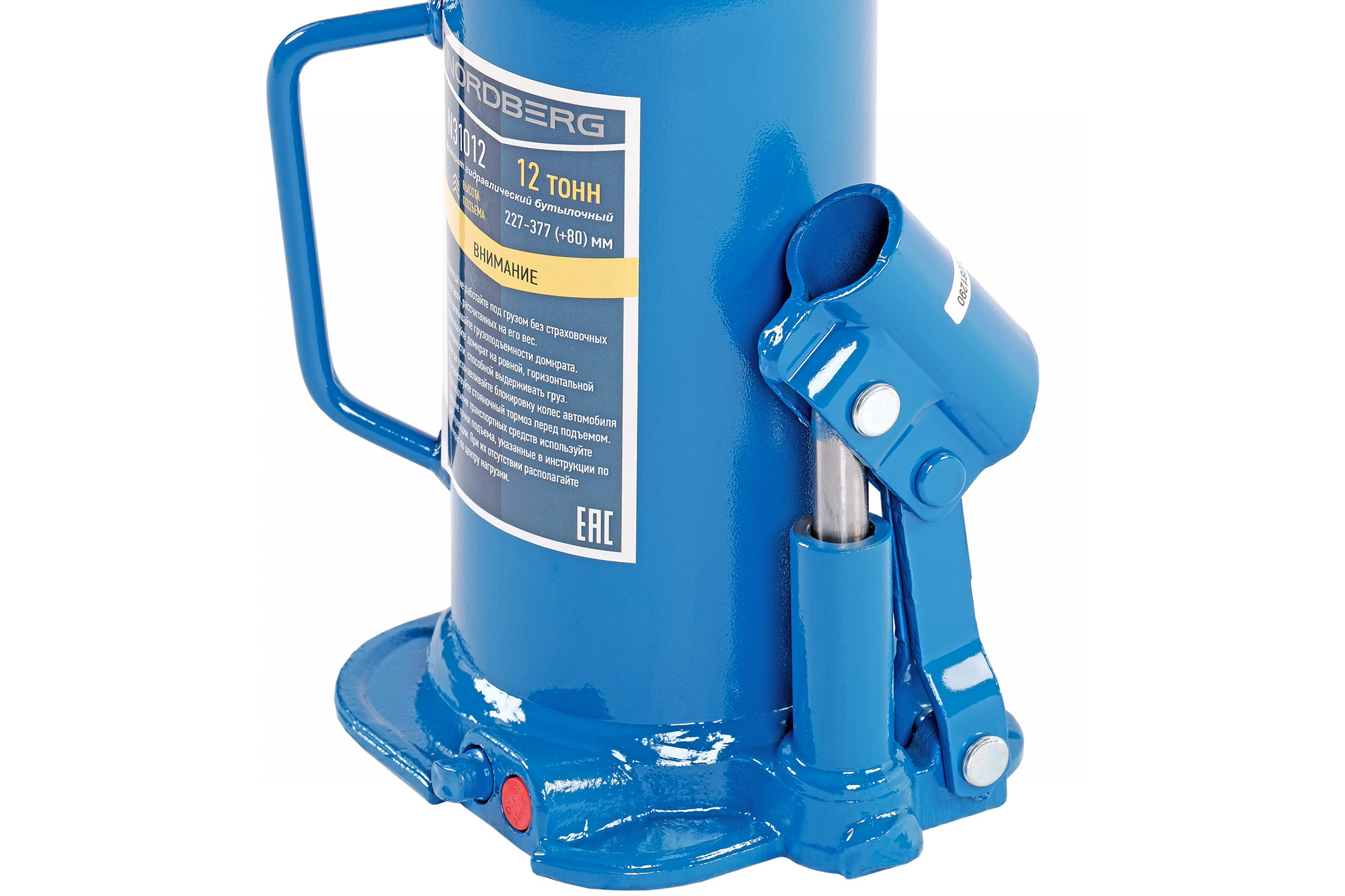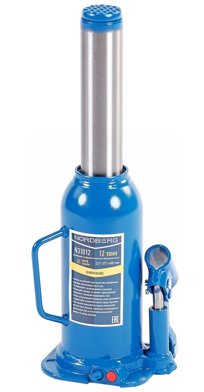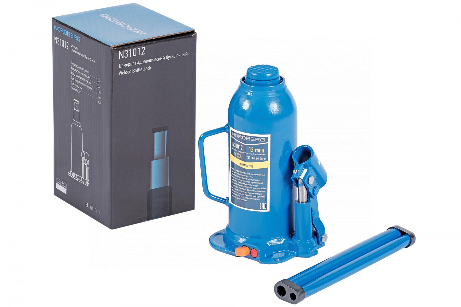 О товаре Домкрат бутылочный NORDBERG N31012 – профессиональное грузоподъемное оборудование для сервисных работ в автотранспортных предприятиях, автомастерских и СТО. ФУНКЦИОНАЛ Гидравлический домкрат с ручным приводом способен поднимать различные виды грузов и транспортных средств до 12 тонн, обеспечивая надежную и безопасную процедуру подъема. ПРЕИМУЩЕСТВА Грузоподъемность 12 т Плавный подъем груза при небольшом рабочем усилии оператора, обеспечивается оптимальной конструкцией гидравлической системы домкрата Выдвижной винт 8 см Могут быть использованы в качестве рабочего элемента в более сложных устройствах, таких как прессы, трубогибы и прочее, где рабочий элемент располагается вертикально или горизонтально Надежная эксплуатация УДОБСТВО ИСПОЛЬЗОВАНИЯ Простое использование Минимальное техническое обслуживание КОМПЛЕКТАЦИЯ Домкрат NORDBERG N31012 Рукоять Паспорт-инструкция Бутылочный домкрат NORDBERG N31012 – высококачественное силовое оборудование для выполнения подъемных работ при диагностике и ремонте автомобиля в автосервисах, шиномонтажах и автотранспортных предприятиях. Показать полностью Скрыть Характеристики Грузоподъемность максимальная, т 12 Минимальная высота подхвата, см 22,7 Максимальная высота подъема, см 45,7 Ход штока, см 15 Ход винта, см 8 Привод гидравлический Тип одноплунжерный **Габариты и вес товара с упаковкой Общий вес с упаковкой - 5.97 кг Упаковка Размеры упаковки (Д*Ш*В), мм Вес, кг Упаковка №1 144 x 128 x 243 5.97 ** Теоретический вес
