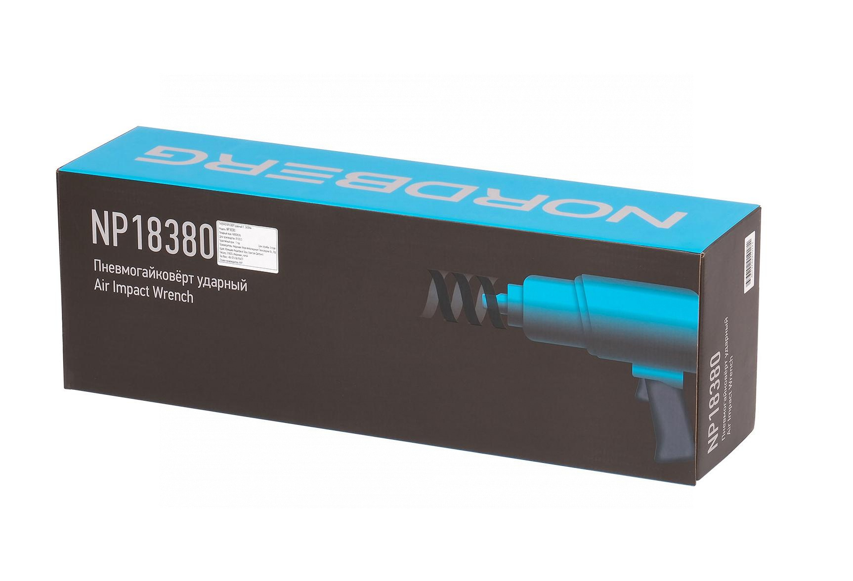 О товаре Пневмогайковерт ударный NORDBERG NP18380 – профессиональное пневматическое оборудование для автосервисов, шиномонтажей и СТО. ФУНКЦИОНАЛ Предназначен для работы с резьбовыми соединениями при проведении ремонтных работ в грузовом шиномонтаже, автосервисах, а также для промышленного применения. ПРЕИМУЩЕСТВА Максимальное усилие 3660 Нм Система PIN-LESS обеспечивает мощный крутящий момент, высокую скорость работы и стабильные показатели мощности Крепкий прочный корпус УДОБСТВО ИСПОЛЬЗОВАНИЯ Оснащен курком с внутренней стороны боковой рукоятки для удобства эксплуатации Эргономичная продуманная конструкция для удобного удерживания инструмента в руках КОМПЛЕКТАЦИЯ Ударный пневмогайковерт NORDBERG NP18380 Паспорт-инструкция Пневматический гайковерт NORDBERG NP18380 позволит проводить эффективную, быструю и качественную работу при шиномонтажных и ремонтных операциях с автомобилем. Показать полностью Скрыть Характеристики Посадочный квадрат, дюйм 1 Диаметр впускного отверстия, дюйм 1/2 Максимальное усилие, Нм 3660 Рабочее давление, бар 8 Скорость свободного вращения, об/мин 3500 Вес, кг 14.2 Тип ударного механизма PIN-LESS **Габариты и вес товара с упаковкой Общий вес с упаковкой - 17 кг Упаковка Размеры упаковки (Д*Ш*В), мм Вес, кг Упаковка №1 240 x 680 x 190 17 ** Теоретический вес