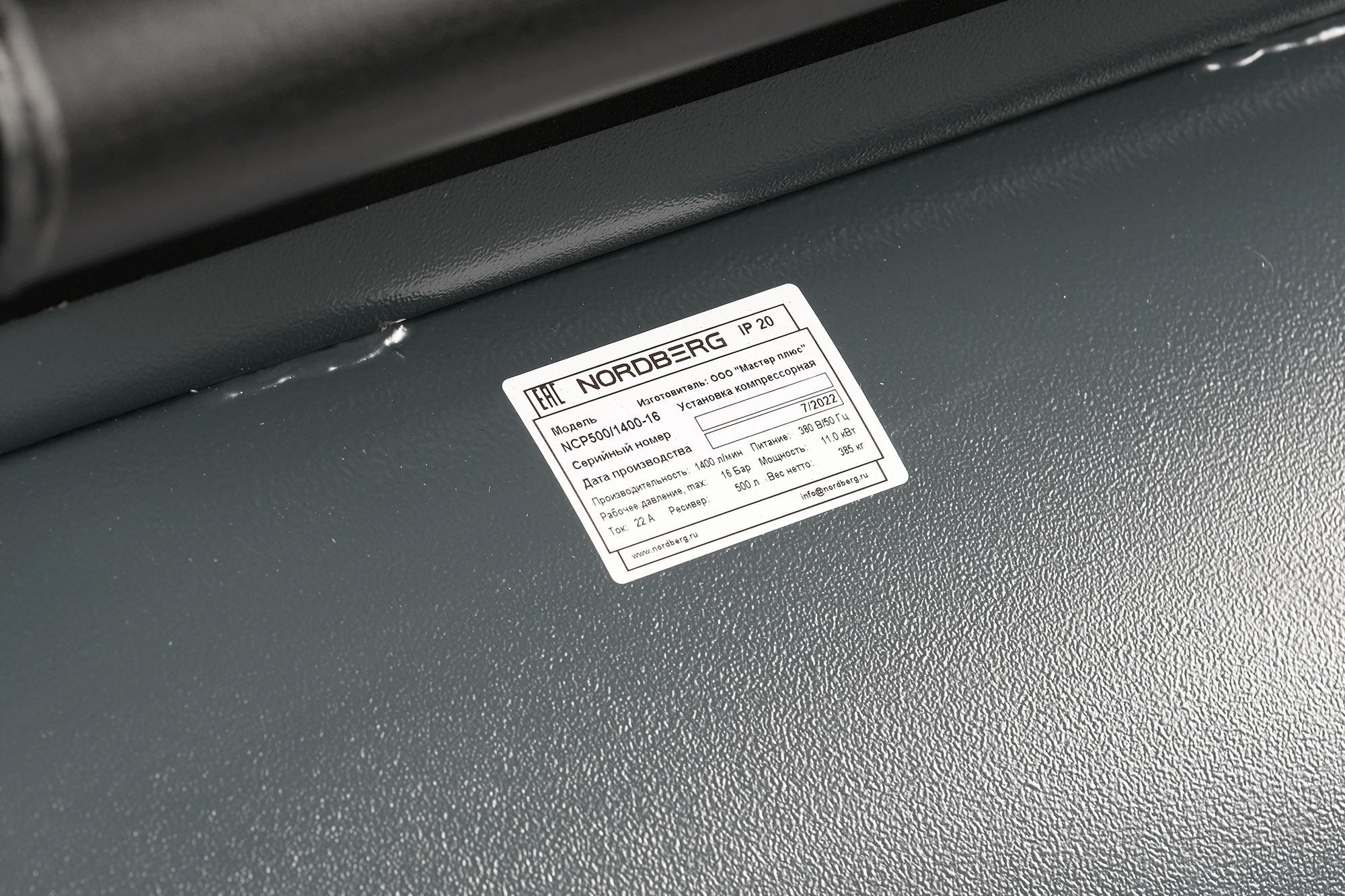 О товаре Поршневой компрессор с ременным приводом NORDBERG NCP500/1400-16 – промышленное оборудование для применения с пневмоинструментами в автосервисных мастерских и для использования в бытовых целях. ПРЕИМУЩЕСТВА Вместительный ресивер объемом 500 литров Чугунный блок с раздельными цилиндрами Максимальное давление 16 бар УНИВЕРСАЛЬНОСТЬ Компрессор может использоваться как в автотранспортных предприятиях, автосервисах, так и на строительных площадках, быту и прочее. КОМПЛЕКТАЦИЯ Компрессор NORDBERG NCP500/1400-16 Паспорт-инструкция Поршневой компрессор NORDBERG NCP500/1400-16 позволит существенно повысить производительность труда и снизить трудоемкость многих операций в автосервисах и на промышленных производствах. Показать полностью Скрыть Характеристики Производительность на входе, л/мин 1400 Производительность на выходе, л/мин 980 Объем ресивера, л 500 Напряжение, В 380 Потребляемая мощность, кВт 11 Безмасляный нет Привод компрессора ременной Рабочее давление, бар 16 Цвет серый Количество цилиндров 4 Исполнение горизонтальное Транспортировочные колеса нет Габариты, мм 2000x615x1250 Вес, кг 385 Скорость холостого хода, об/мин 770 **Габариты и вес товара с упаковкой Общий вес с упаковкой - 470 кг Упаковка Размеры упаковки (Д*Ш*В), мм Вес, кг Упаковка №1 2080 x 750 x 1460 470 ** Теоретический вес