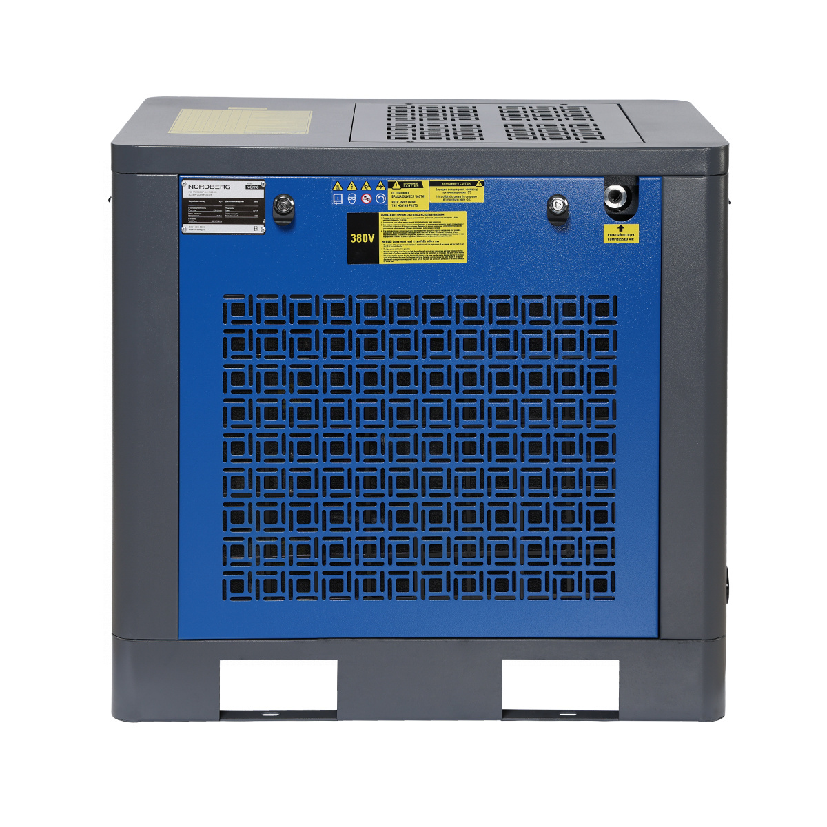 О товаре NORDBERG NCN10 – стационарный одноступенчатый винтовой компрессор без ресивера ФУНКЦИОНАЛ Винтовой компрессор с впрыском масла и приводом от электродвигателя используется для выработки сжатого воздуха при использовании пневмоинструмента и оборудования. ПРЕИМУЩЕСТВА Прямой привод с муфтой снижает вибрацию и ударные нагрузки, компенсирует несоосность валов, а также смягчает пусковые нагрузки, Удобный ЖК-дисплей, отображающий текущие операции и возможность мониторинга и защиты компрессора, Низкий уровень шума и вибрации 63 дБ, Может использоваться в сложных нагруженным технологических процессах, по сравнению с поршневыми компрессорами, Наличие защиты от высокого и низкого рабочего напряжения, перегрузки вентилятора, обрыва фазы и дисбаланса, Степень защиты IP55. NORDBERG NCN10 — позволит существенно повысить производительность труда и снизить трудоемкость многих операций в автосервисах и на промышленных производствах. Не забудьте приобрести ресивер (100-500 л) Показать полностью Скрыть Характеристики Производительность, л/мин 850 Потребляемая мощность, кВт 7,5 Рабочее давление, бар 10 Уровень шума, дБ 63 Степень защиты IP55 Габариты, мм 850х560х940 **Габариты и вес товара с упаковкой Общий вес с упаковкой - 135 кг Упаковка Размеры упаковки (Д*Ш*В), мм Вес, кг Упаковка №1 960 x 650 x 960 135 ** Теоретический вес