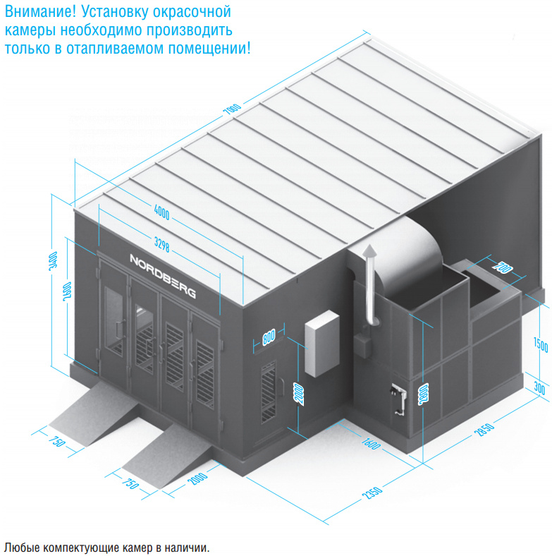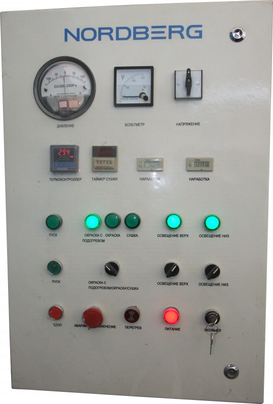 О товаре Окрасочно-сушильная камера (ОСК) NORDBERG LUX с горелкой предназначена для окраски легковых автомобилей целиком или частично. Камера представляет собой кабину на металлическом основании с вентиляторной группой для нагнетания избыточного давления воздуха внутри кабины и для обеспечения устойчивого воздухопотока. Камера NORDBERG LUX работает в следующих режимах: 1. ПОКРАСКА В камере поддерживается постоянная температура +20≈25 ⁰С в зависимости от применяемой краски. 2. СУШКА В камере поддерживается постоянная температура +60≈80 ⁰С в зависимости от применяемой краски и установленных пластмассовых деталей автомобиля. 3. ПРОДУВКА Кратковременный режим для удаления из камеры летучих соединений и паров краски, а также для остывания после сушки. ОСОБЕННОСТИ Кабина состоит из сэндвич-панелей, изготовленных с дополнительным запасом прочности из толстого металла и наполненных минеральной ватой Rockwool. Толщина панелей составляет 50 мм. По торцам панели усилены дополнительными ребрами жесткости, что значительно продлевает срок их эксплуатации и исключает ситуации когда от избыточного давления панель может быть выдавлена воздухом. Теплогенераторный блок, в котором находятся моторы, теплогенератор, фильтры, заслонка, горелка, пневмоцилиндр и шибер, изготовлен из профилированной оцинкованной стали. Панели блока: наружная часть – окрашенная сталь, внутренняя часть – оцинкованная сталь. Металлическое основание состоит из 5 рядов усиленных крученых решеток, под которыми расположены дополнительные металлические панели для точно рассчитанного распределения воздухопотока внутри камеры. ОСК имеет дополнительные опоры под 2 и 4 рядами решеток. Боковые LED-светильники вмонтированы в панели и расположены горизонтально в 2 ряда. Угловые LED-светильники расположены вдоль по всей длине камеры. Наличие торцевых LED-светильников. Светильники имеют пониженное энергопотребление, покрыты порошковой краской. Дверь оператора окрасочно-сушильной камеры укреплена изнутри. Цилиндр размером 32х200 мм входит в комплект. ОСК можно установить на пол или в приямок. Воздухозабор и удаления воздуха по технологии Siemens: осевой центробежный мотор передает вращение непосредственно на лопасти вентилятора, за счет этого малошумен, имеет высокую производительность и долговечность, т.к. нет лишних ременных передач. Для снижения пусковых токов применена ступенчатая схема старта электродвигателя. Для переключения режимов нагрев/сушка используется заслонка (шибер) с пневматическим клапаном, который работает намного надежнее и быстрее, чем электрический привод. Для переключения режимов не требуется отключать моторы камеры. Установка NORDBERG LUX снабжена ручной воздухозаслонкой для регулировки внутреннего давления (в блоке удаления воздуха). Вентиляторы камеры могут быть установлены сбоку, сзади и над камерой. Для крепления сверху необходима дополнительная усиливающая конструкция. Пульт управления комплектуется японским температурным контроллером Shinko (с функцией сохранения параметров). В данных контроллерах можно запрограммировать сразу 2 режима работы. Настройки сохраняются в течение длительного времени, отсутствует необходимость программировать их еженедельно. Режимы работ на пульте управления: окраска, окраска с подогревом, сушка. Кнопки на пульте: выключат