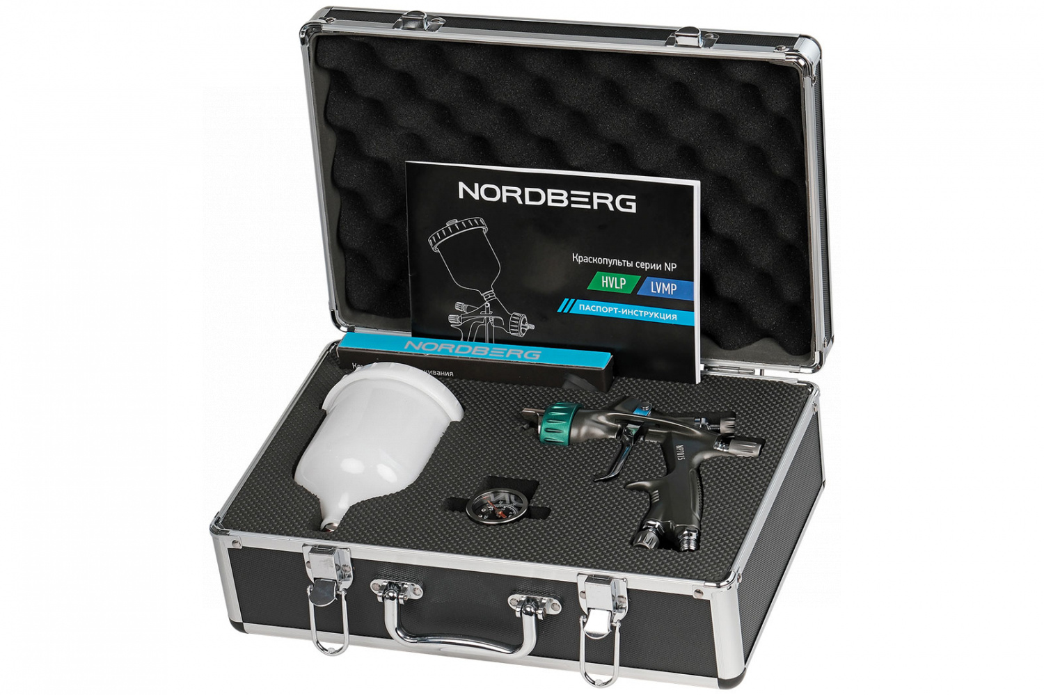 Краскопульт HVLP с верхним бачком, сопло 1,3 мм, алюминиевый кейс np7015