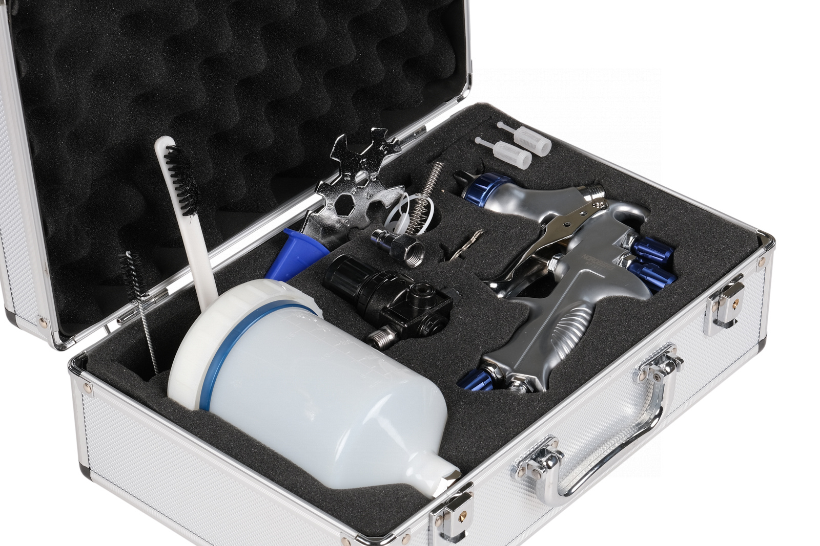 Краскопульт LVMP с верхним бачком, сопло 1,3 мм, алюминиевый кейс np7013