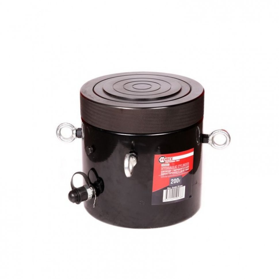 Цилиндр гидравлический с резьбовым штоком и гайкой для механической фиксации 200т (ход штока-100мм, Ø штока-190мм,общий Ø-238мм, L-393мм, 700bar)