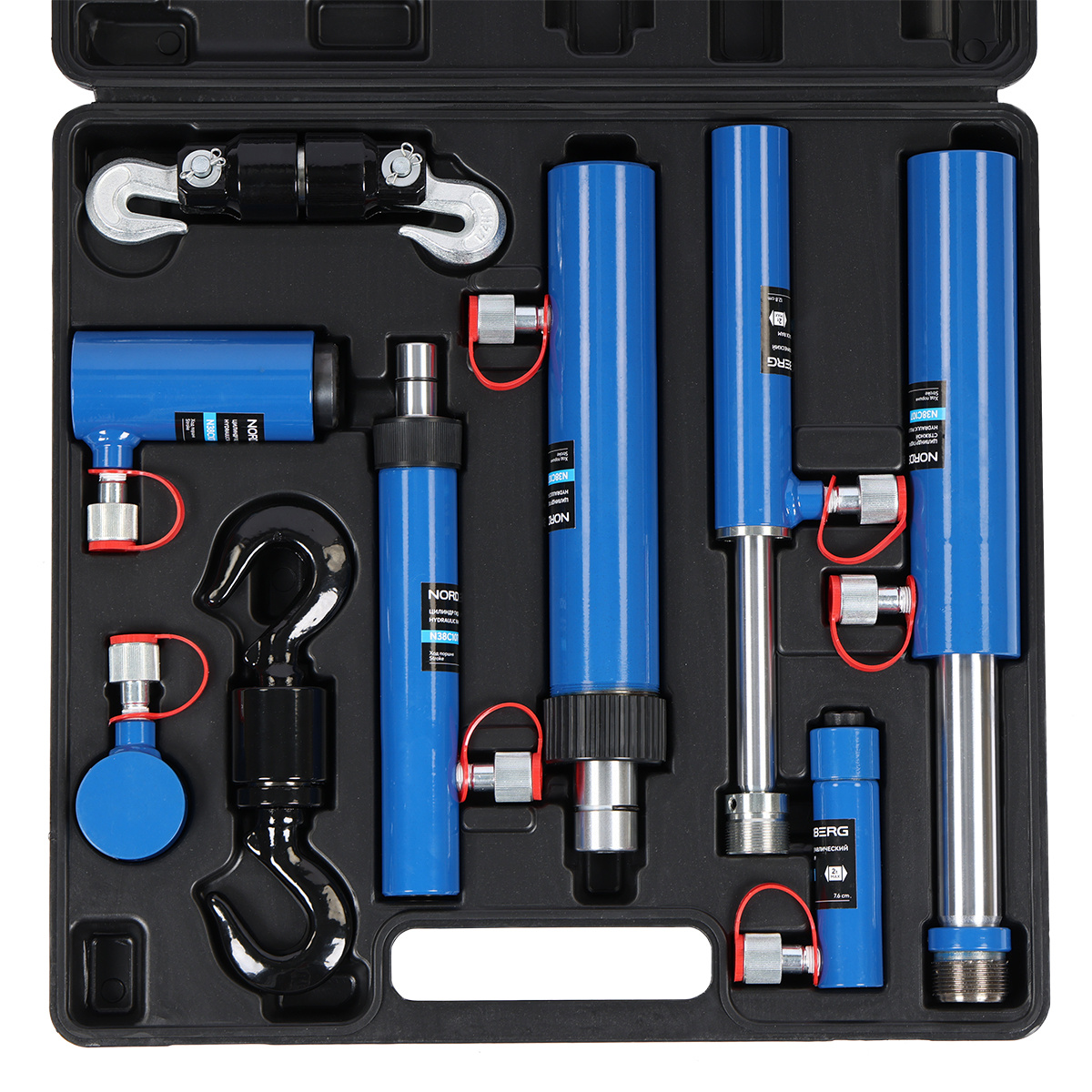 О товаре NORDBERG N38C107 — комплект гидравлических цилиндров для растяжки. ФУНКЦИОНАЛ Комплект предназначен для выполнения кузовных работ. Подходит для восстановления геометрии кузова автомобиля, включая труднодоступные участки. Разнотипные цилиндры в комплекте обеспечивают универсальное применение — от незначительных ремонтов до устранения серьёзных деформаций. ПРЕИМУЩЕСТВА Широкий набор цилиндров — в комплекте 7 цилиндров различного назначения (толкающие и тянущие), включая мини-цилиндры для ограниченного пространства и мощные стяжные модели, Разнообразие усилий — от 2 до 10 тонн, что позволяет подобрать оптимальный цилиндр под задачу, Совместимость с насосами — стандартные фитинги позволяют подключать изделие к большинству гидравлических насосов, Поворотные крюки — удобны для фиксации под различными углами при работе. КОМПЛЕКТАЦИЯ Цилиндр для растяжки 10 т — 1 шт. Короткий цилиндр для растяжки 10 т — 1 шт. Цилиндр для растяжки 4 т — 1 шт. Цилиндр для растяжки 4 т — 1 шт. Цилиндр для растяжки 2 т — 1 шт. Цилиндр стяжной 5 т — 1 шт. Цилиндр стяжной 2 т — 1 шт. Комплект крюков 5 т — 1 шт. Комплект крюков 2 т — 1 шт. Кейс для хранения и переноски — 1 шт. NORDBERG N38C107 — это профессиональное решение для кузовного ремонта, которое сочетает в себе мощность, компактность и универсальность. Идеально подходит для СТО, мастерских и кузовных центров, где важны точность, скорость и удобство в работе. Показать полностью Скрыть Характеристики Принцип действия растяжной Максимальное усилие, т 10 Рабочее давление, бар 558 Ход штока, мм 58/150 Максимальная длина, мм 135/350 Диаметр впускного отверстия, дюйм 1/4 NPT **Габариты и вес товара с упаковкой Общий вес с упаковкой - 22.5 кг Упаковка Размеры упаковки (Д*Ш*В), мм Вес, кг Упаковка №1 510 x 510 x 120 22.5 ** Теоретический вес