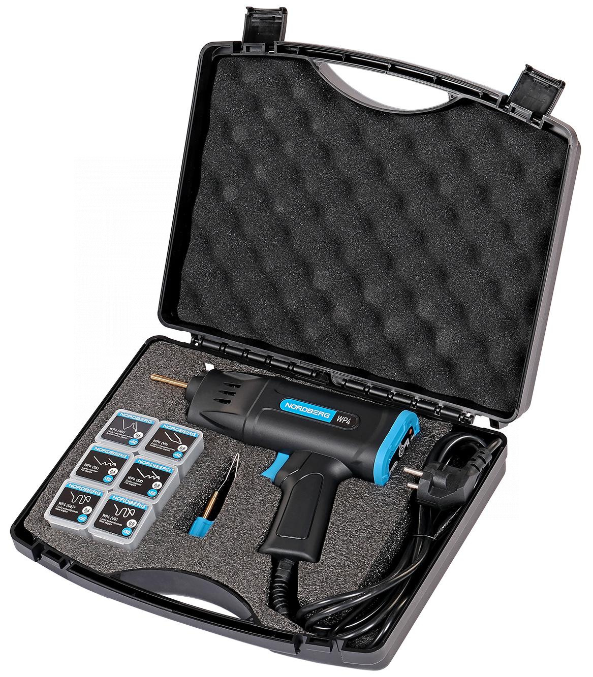 О товаре Термостеплер NORDBERG WP4 в наборе со скобами используется в автомастерских, в гараже или на станциях технического обслуживания автотранспорта. ФУНКЦИОНАЛ Предназначен для ремонта пластиковых деталей путем армирования шва металлическими скобами, которые разогреваются и вводятся в пластик. ПРЕИМУЩЕСТВА Мощность 75 Вт обеспечивает быстрый нагрев прибора Большой набор скоб в комплекте для различных типов трещин 3 скорости нагрева Функции защиты от перегрева и перегрузки УДОБСТВО ИСПОЛЬЗОВАНИЯ Благодаря эргономичной форме прибор удобно держать в руке LED-подсветка рабочей зоны позволяет использовать термостеплер при недостаточном освещении КОМПЛЕКТАЦИЯ Термостеплер Скоба волнообразная 0,6 мм - 50 шт. Скоба волнообразная 0,8 мм - 50 шт. Скоба широкая 0,8 мм - 50 шт. Скоба широкая 0,6 мм - 50 шт. Скоба с внешним углом 0,8 мм - 50 шт. Скоба с внутренним углом 0,6 мм - 50 шт. Насадка для разглаживания швов Пластиковый кейс Паспорт-инструкция Термостеплер для ремонта пластика в кейсе NORDBERG WP4 позволит качественно ремонтировать дорогостоящие пластиковые детали автомобилей, обеспечивая надежное и аккуратное соединение их частей. Показать полностью Скрыть Характеристики Напряжение, В 220 Мощность, Вт 75 Кол-во скоростей нагрева 3 Защита от перегрева есть Защита от перегрузки есть Подсветка рабочей зоны есть Напряжение, Гц 50 **Габариты и вес товара с упаковкой Общий вес с упаковкой - 1.5 кг Упаковка Размеры упаковки (Д*Ш*В), мм Вес, кг Упаковка №1 270 x 325 x 80 1.5 ** Теоретический вес