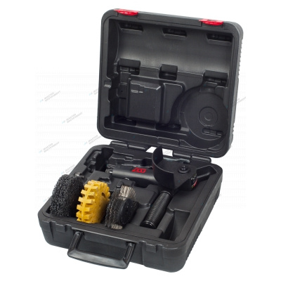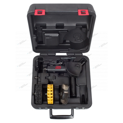 О товаре Машинка системы MBX для удаления ржавчины c комплектом принадлежностей MIGHTY SEVEN QB-0808 предназначена удаления с металлических поверхностей ржавчины, старых покрытий, загрязнений, окалины, всевозможных защитных покрытий, наклеек, а также зачистки поверхностей изделий из резины, металла, пластмассы, камня и дерева. Применяется в строительных, ремонтных, деревообрабатывающих и других видах работ. Используется в работе с легковым, средним коммерческим и грузовым транспортом. Незаменимый помощник при проведении зачистных, слесарно-монтажных и сборочных работ. Может применяться в автосервисе, на производствах, также прекрасно подойдёт в качестве профессионального гаражного инструмента. Применение пневматической машинки для удаления ржавчины в быту или промышленности позволяет не только сэкономить время и силы, но и значительно повысить общее качество работ. Специально подобранная скорость редуктора обеспечивает быструю и качественную очистку поверхностей. Корпус пневматической машинки для удаления ржавчины изготовлен из алюминиевого сплава, а приводной механизм изготовлен из прочнейшего сплава. Дополнительная рукоятка обеспечивает надёжное удержание в руках оператора. Конструкция и детали изготовлены с высокой точностью, что обеспечивает сохранение заявленных технических характеристик в течение длительного срока эксплуатации. Инструмент расположен в пластиковом кейсе для комфортного хранения и транспортировки. Показать полностью Скрыть Характеристики Рабочее давление 6,3 бар Потребление воздуха 300 л/мин Максимальное число оборотов 3600 об./мин Диаметр требуемого шланга 10 мм Резьба впускного отверстия 1/4inch (Дюйм) NPT (внутренняя резьба) Уровень шума 86 Дб Вибрация 0,3 м/c2 Длина 200 мм Вес 3.4 кг **Габариты и вес товара с упаковкой Общий вес с упаковкой - 3.4 кг Упаковка Размеры упаковки (Д*Ш*В), мм Вес, кг Упаковка №1 300 x 300 x 150 3.4 ** Теоретический вес