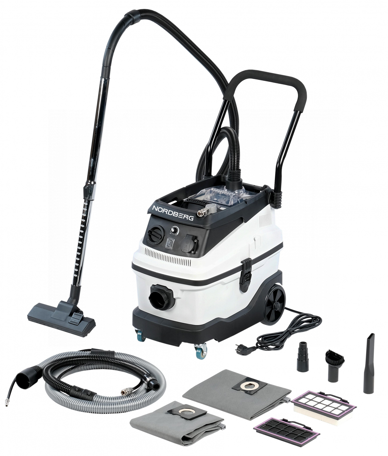 О товаре Профессиональный пылесос NORDBERG NV34 два отверстия для всасывания встроенный мешок для сбора пыли водяной фильтр трехступенчатую систему HEPA фильтрации для профессиональной работы по удалению сверхтонкой пыли Ролики в передней части пылесоса и большие задние колеса позволяют легко перемешать пылесос, а множество насадок позволяет использовать его в самых разных местах. Особенностями пылесоса являются двойные вентиляторы, эффективные двигатели, более высокая сила всасывания, более продолжительный срок службы. Модель подходит как для влажной, так и для сухой уборки. Комплект поставки Пылесос Шланг для подключения электрического оборудования Шланг для пневматического оборудования Инструкция Переходники Плоская насадка Щелевая насадка Круглая насадка 2 тканевых пылесборных мешка Показать полностью Скрыть Характеристики Потребляемая мощность, Вт 1600 Объем бака, л 30 Разрежение, мбар 180 Розетка для электроинструмента да Пылесборник мешок, бак Длина кабеля, м 4 Диаметр шланга, мм 32 Длина шланга, см 200 **Габариты и вес товара с упаковкой Общий вес с упаковкой - 16.5 кг Упаковка Размеры упаковки (Д*Ш*В), мм Вес, кг Упаковка №1 600 x 390 x 580 16.5 ** Теоретический вес
