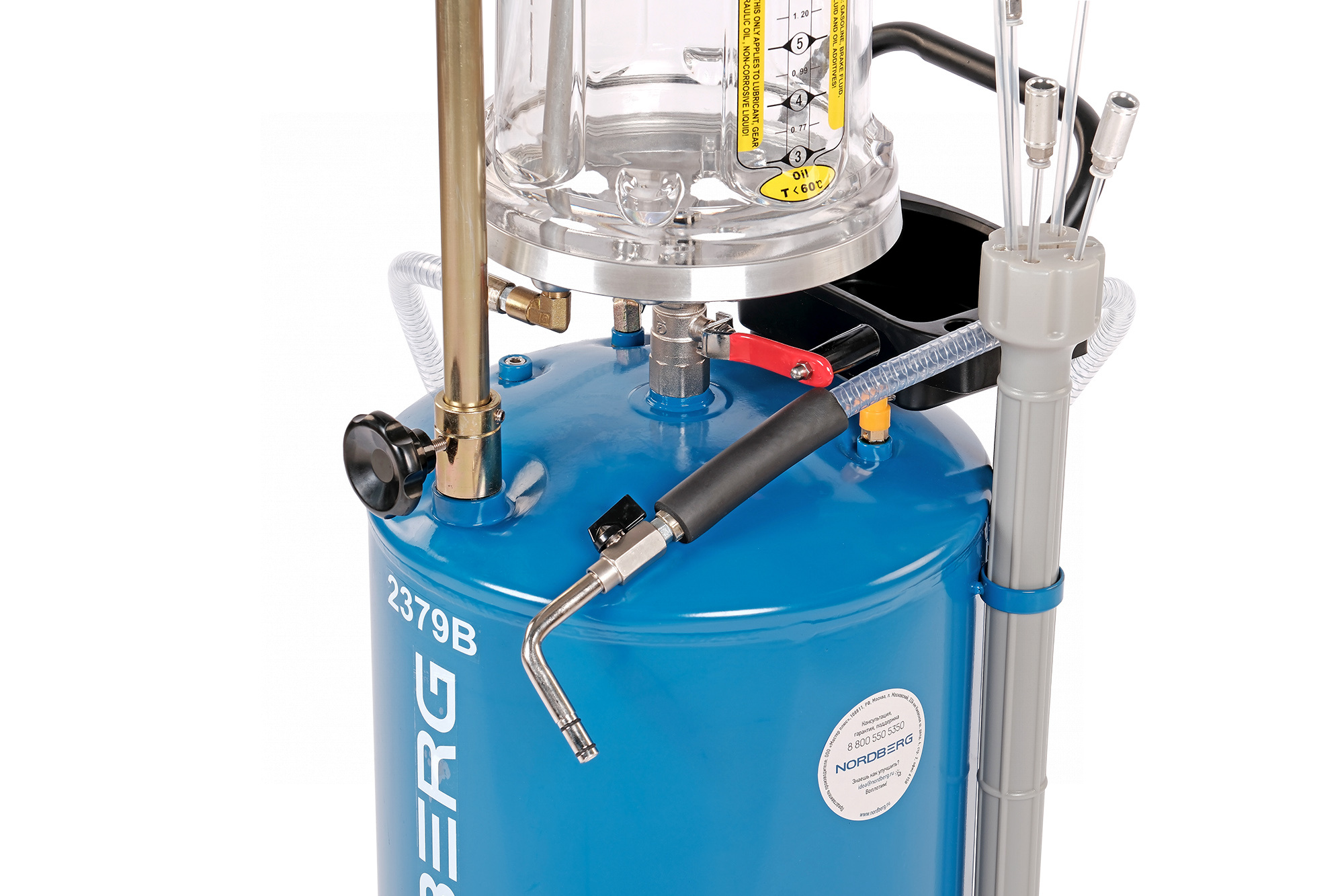 О товаре Установка для замены масла NORDBERG (2379) 2379B предназначена для удаления отработанного масла и других жидкостей из любого транспортного средства при помощи вентури-вакуумной вытяжной системы или свободным сливом. Используется как сливное устройство со свободным сливом отработанного масла из двигателей, коробок передач и дифференциалов всех транспортных средств. Включает 5 пластиковых щупов, оборудованных быстро разъемными муфтами (наконечниками), для извлечения жидкости через отверстие щупа контроля уровня масла автомобиля. Установка портативна и проста в эксплуатации. Регулируемая воронка для сбора масла может быть установлена на необходимой для работы высоте. Оборудование укомплектовано краном в воронке для сбора масла, для контроля состояния сливаемого масла перед началом слива в резервуар. Возможность самоочистки делает работу с устройством чистой и легкой. Осмотровая колба позволяет визуально оценить качество отработанного масла, имеющиеся недостатки двигателя и т.п. Показать полностью Скрыть Характеристики Рабочее давление, бар 8 Макс. высота установки, мм 1 680 Мин. высота установки, мм 1 025 Забор масла через щуп да Просмотровая колба да Воронка да Объем бака, л 65 Объем воронки, л 16 Среднее потребление воздуха, л/мин 150 Способ слива давление Маслосбор слив+откачка Насос вакуумный **Габариты и вес товара с упаковкой Общий вес с упаковкой - 24 кг Упаковка Размеры упаковки (Д*Ш*В), мм Вес, кг Упаковка №1 480 x 440 x 940 20.5 Упаковка №2 270 x 280 x 570 4.5 ** Теоретический вес