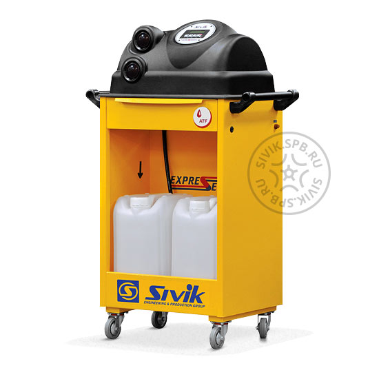 объемах в процессе замены, со скоростью, определяемой насосом системы охлаждения АКПП. Забор новой жидкости из любой внешней ёмкости положительным образом сказывается на удобстве эксплуатации установки. Кроме того в комплекте поставляются вместительные