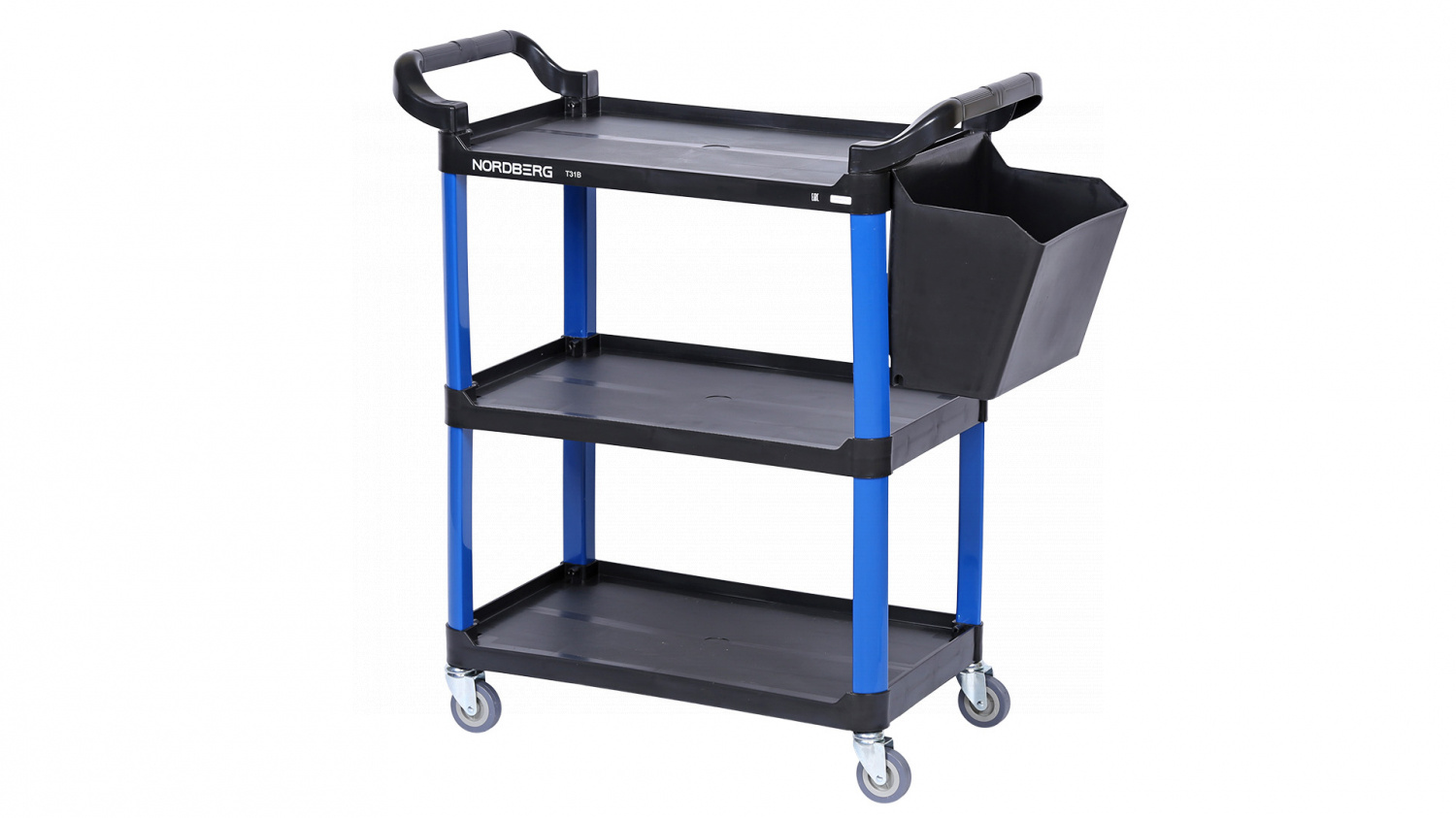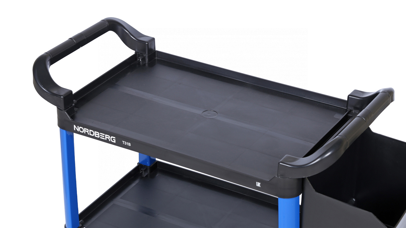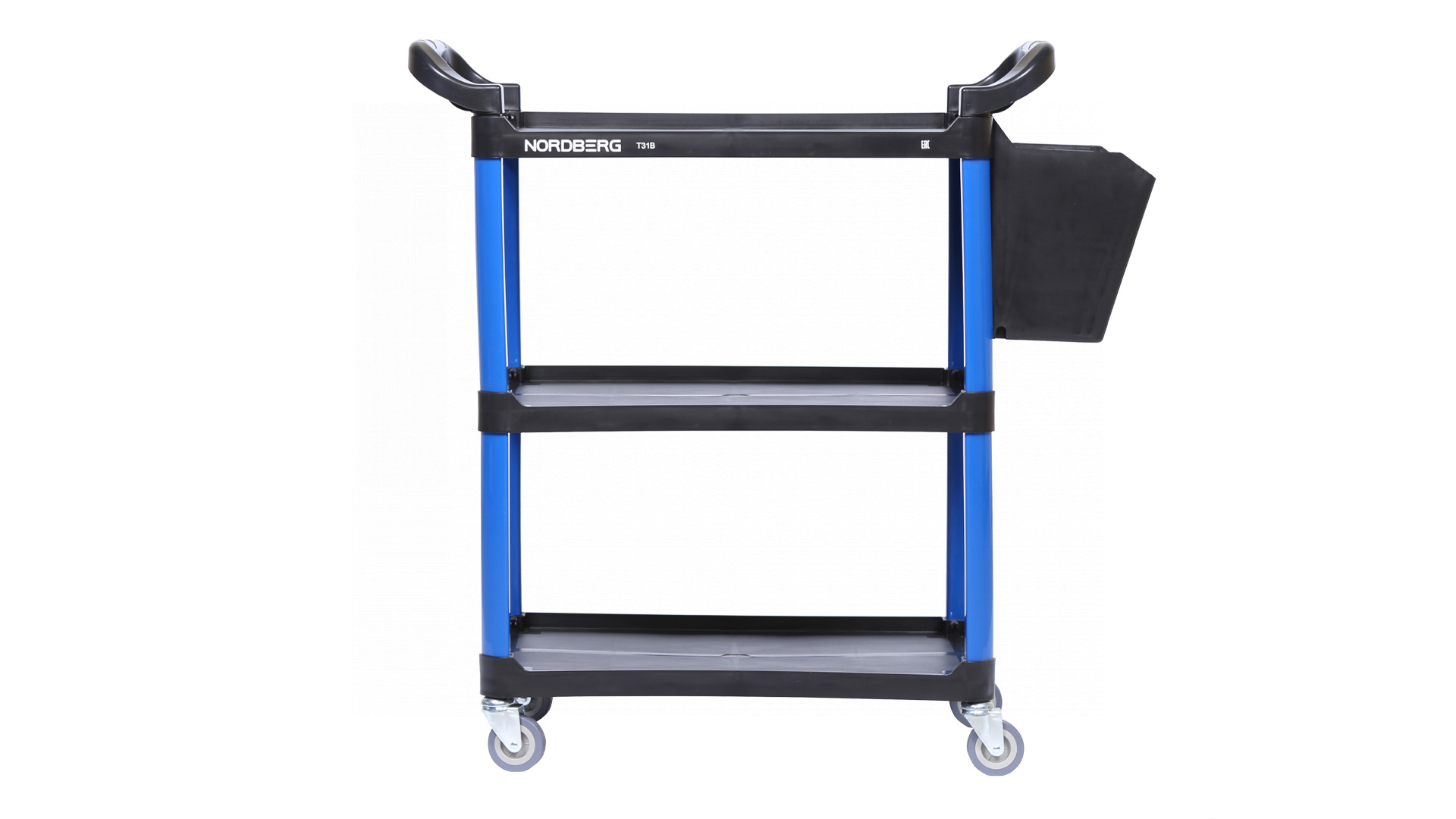 О товаре Тележка инструментальная NORDBERG T31B с полками – для удобства работы и хранения инструмента в автосервисах, СТО и частных гаражах. ФУНКЦИОНАЛ Компактное размещение, хранение и транспортировка необходимых инструментов, деталей и материалов к месту проведения ремонтных работ. ПРЕИМУЩЕСТВА Прочная конструкция с тремя открытыми полками Закруглённые края тележки не повреждают лакокрасочное покрытие автомобиля Может использоваться в помещениях с большой влажностью благодаря антикоррозийному покрытию Боковой съёмный отсек для хранения Размеры тележки 43х85х115 см УДОБСТВО ИСПОЛЬЗОВАНИЯ Эргономичная конструкция, колеса для легкого перемещения по рабочей зоне и вместительные полки позволяют упорядоченно размещать инструменты и расходные материалы, экономя время на поиск нужных предметов. Профессиональная инструментальная тележка NORDBERG T31B позволит с легкостью организовать передвижное рабочее место в помещениях автосервисов и СТО. Показать полностью Скрыть Характеристики Максимальная нагрузка на полку, кг 50 Защита от опрокидывания нет Центральный замок нет Габариты тележки, мм 430х850х1150 Цвет синий, черный **Габариты и вес товара с упаковкой Общий вес с упаковкой - 8 кг Упаковка Размеры упаковки (Д*Ш*В), мм Вес, кг Упаковка №1 705 x 445 x 205 7.5 Упаковка №2 340 x 270 x 375 1.407 ** Теоретический вес