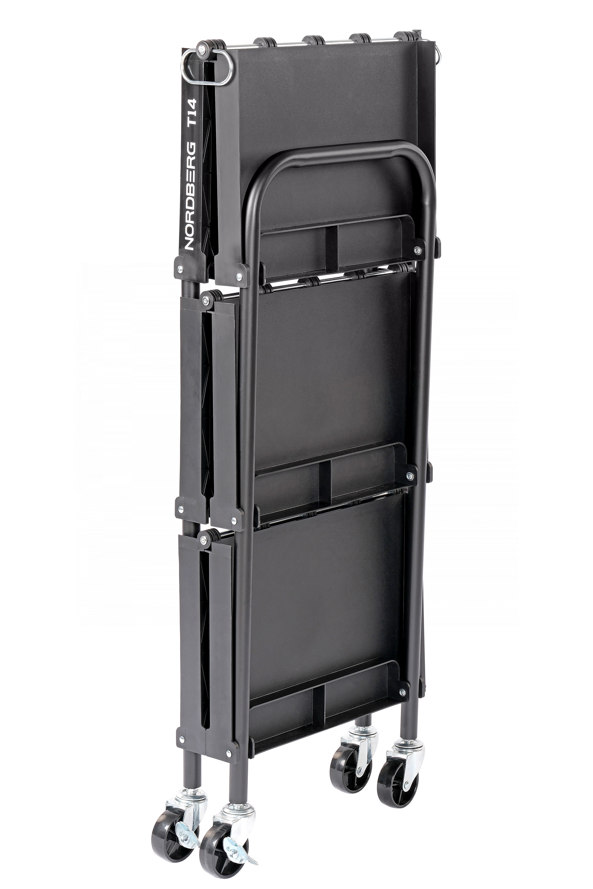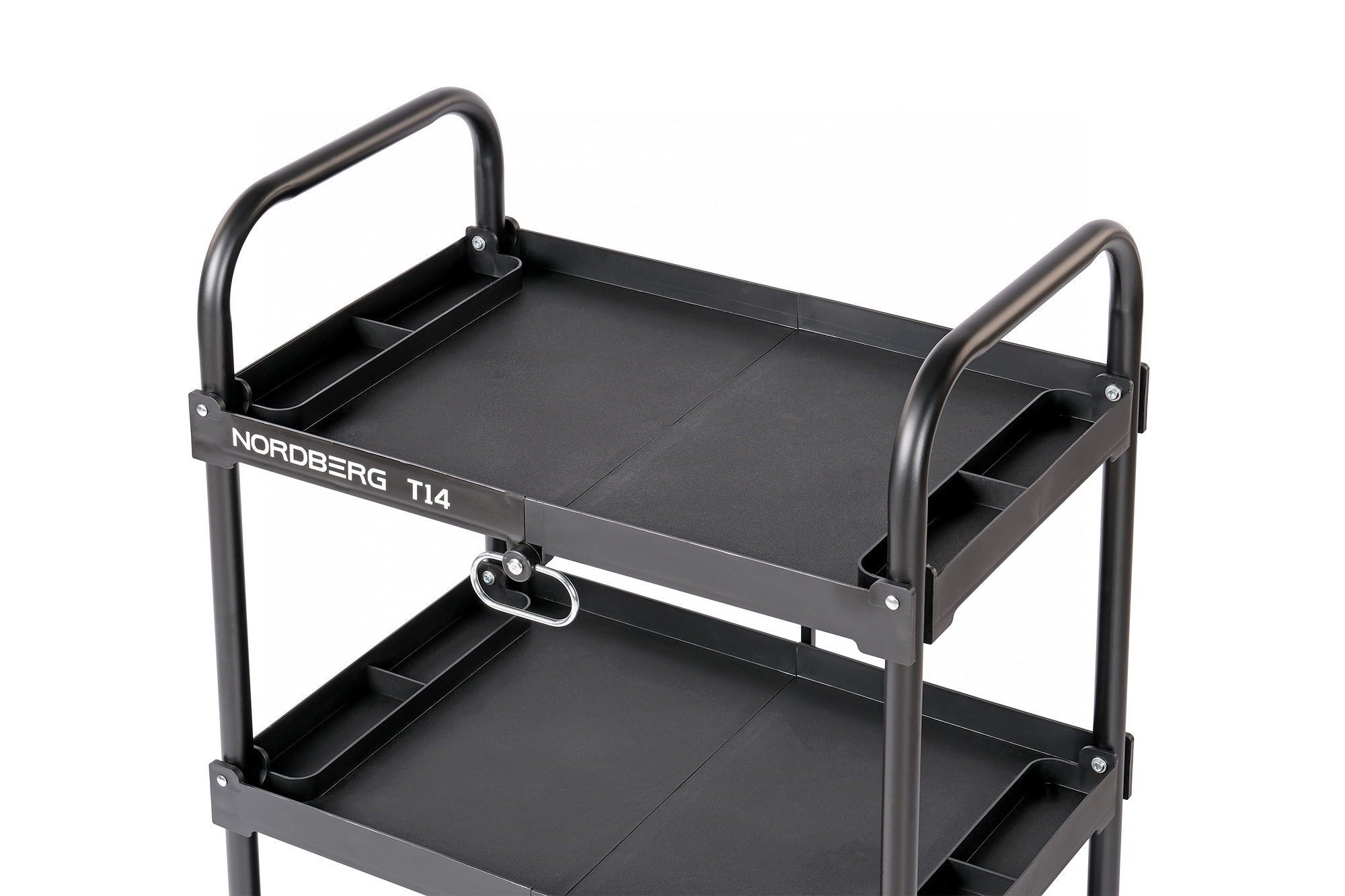 О товаре Тележка инструментальная с 3 пластиковыми полками, складная NORDBERG T14. Тележка инструментальная предназначена для удобства временного хранения и перемещения небольших деталей и инструмента, а также организации передвижного рабочего места в процессе работ. Особая конструкция из металлических стоек и пластиковых полок позволяет организовать комфортное рабочее пространство и предохраняет от случайных царапин на кузове автомобиля в процессе работ. Наличие 3 полок с 5 отделениями обеспечивает достаточное пространство для удобной организации рабочего места и упорядочение хранения инвентаря. Каждая полка в передвижной тележке T14 изготовлена с защитными бортами. Покрытие полок имеет антискользящую поверхность, препятствующую скольжению рабочего инструмента. Размер полок - 600х400 мм. Максимальная нагрузка на полку составляет 15 кг, общая допустимая нагрузка на тележку – 45 кг. Инструментальная ярусная тележка T14 оснащена маневренными колесами с прорезиненным покрытием для быстрого и легкого перемещения по рабочей площадке. Все колеса вращаются на 360 градусов, что облегчает передвижение тележки. Для безопасности и удобства эксплуатации инструментальная тележка оснащена двумя колесами с тормозом. В комплекте с тележкой поставляются колеса диаметром 70 мм. Инструментальная тележка T14 отличается простотой сборки и легкой конструкцией. Габариты инструментальной тележки для хранения инструмента - 640x432x960 мм (ДхШхВ). К преимуществам инструментальной ярусной тележки T14 можно отнести: 3 открытые полки, с максимальной нагрузкой на полку - 15 кг, Возможность компактно разместить инструменты для слесарных и детейлинг работ, Конструкцию полок из пластика с металлическими ребрами жесткости, Маневренные колеса и наличие тормоза, Небольшой вес, легкую конструкцию. Показать полностью Скрыть Характеристики Количество полок, шт. 3 Размеры полок (ДхШ), мм 600х400 Габариты тележки (ДхШхВ), мм 640x432x960 **Габариты и вес товара с упаковкой Общий вес с упаковкой - 9.5 кг Упаковка Размеры упаковки (Д*Ш*В), мм Вес, кг Упаковка №1 1050 x 490 x 150 9.5 ** Теоретический вес