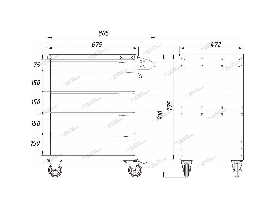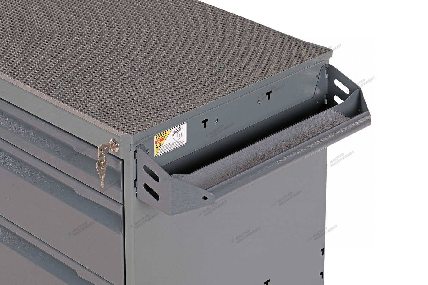 О товаре Передвижная тумба для инструментов OPTIMAL NT215 – для удобства работы и хранения инструмента в автосервисах, шиномонтажных мастерских и гаражах. ФУНКЦИОНАЛ Пять выдвижных ящиков позволяют компактно разместить, хранить и перемещать необходимые инструменты и детали к месту проведения ремонтных работ. ПРЕИМУЩЕСТВА Удобная организация рабочего места Прочная конструкция и порошковая окраска корпуса для длительного срока службы Защитный коврик из вспененного полиуритана на столешнице Размер тумбы: 675 (805 с рукояткой)х472х910 мм УДОБСТВО ИСПОЛЬЗОВАНИЯ Четыре маневренных колеса, два из которых со стопорами, обеспечивают легкое и простое перемещение Центральный замок Профессиональная тумба для инструментов OPTIMAL NT215 позволит с легкостью организовать передвижное рабочее место в помещении автосервиса и шиномонтажа. Показать полностью Скрыть Характеристики Количество выдвижных ящиков 5 Защита от опрокидывания нет Центральный замок да Максимальная допустимая нагрузка, кг 300 Нагрузка на ящик, кг 30 Дополнительный замок в каждом ящике нет Поворотные колеса снабжены тормозом да Габариты полок (ГхШ), мм 400х620 Высота ящиков, мм верхние (1 шт.) - 75, нижние (4 шт.) - 150 Материал столешницы сталь Покрытие столешницы вспененный полиуретан Толщина столешницы, мм 1,5 Габариты тележки, мм 675х472х910 Цвет серый **Габариты и вес товара с упаковкой Общий вес с упаковкой - 52 кг Упаковка Размеры упаковки (Д*Ш*В), мм Вес, кг Упаковка №1 500 x 510 x 810 52 ** Теоретический вес