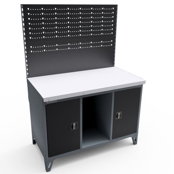 Верстак слесарный 3-х тумбовый, 2 створки, столешница Zn, защитный экран Norm