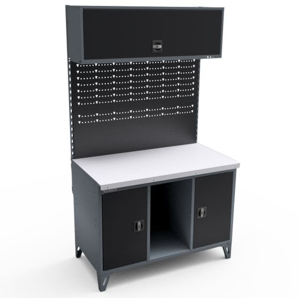 Верстак слесарный 3-х тумбовый, 3 створки, столешница Zn, защитный экраном MaxPlus