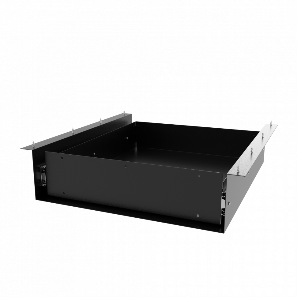 Подвесной ящик крепится к нижней поверхности любой столешницы саморезами. Наружный размер ДхШхВ - 495х460х112 мм. Полезная площадь ящика 470х370 мм. Вес 6,55 кг. Направляющие полного выдвижения. Саморезы в комплекте.
