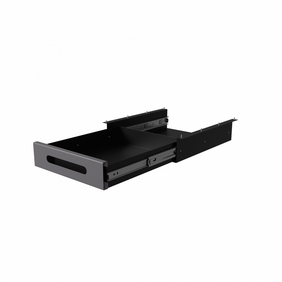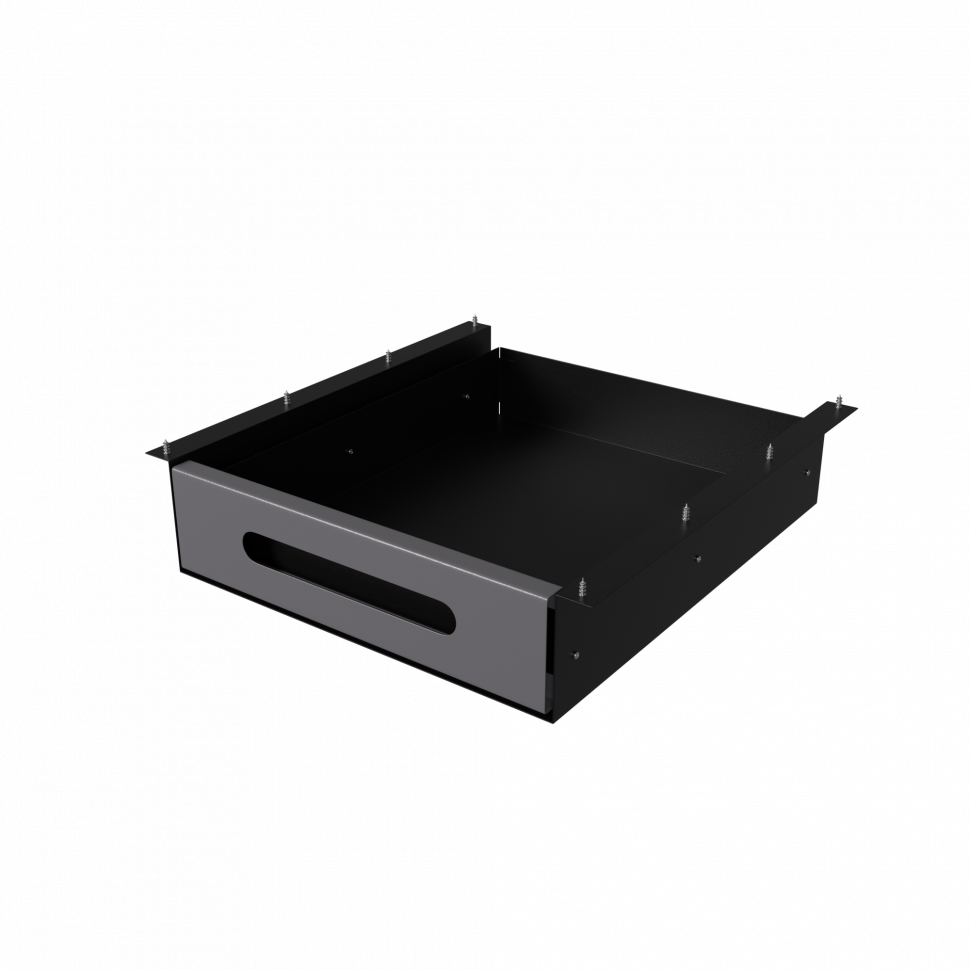 Подвесной ящик крепится к нижней поверхности любой столешницы саморезами. Наружный размер ДхШхВ - 495х460х112 мм. Полезная площадь ящика 470х370 мм. Вес 6,55 кг. Направляющие полного выдвижения. Саморезы в комплекте.