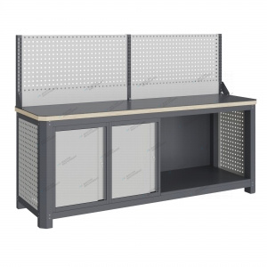 Рама верстака выполнена их холоднокатаной стали. Опоры допускают частичную регулировку по высоте для компенсации неровности пола. Все металлические элементы покрыты полиэфирной порошковой краской, обеспечивающей хорошую износостойкость покрытия и невосприимчивость его к моющим средствам и смазочным веществам. Верстак имеет декларацию соответствия ТР ТС 025/2012 «О безопасности мебельной продукции». Верстак имеет сертификат соответствия ГОСТ Р 58863-2020 «Столы производственные. Верстаки из металла. Общие технические условия». Столешница состоит из листа влагостойкой фанеры марки ФСФ толщиной 40 мм, которая покрыта лаком-антисептиком и листом горячекатаной стали толщиной 5 мм. Глубина столешниц 743 мм. Максимальная масса груза, равномерно распределенного по столешнице, составляет 1500 кг. Модуль верстака выполнен сварными. Ящики в модулях устанавливаются на шариковых телескопических направляющих полного выдвижения. В модуле S7 установлена дверь и две полки. Дверь имеет размеры (ВхШхГ), не более: 578 х 367 х 25 мм. Полка модуля имеет размеры (ВхШхГ), не более: 25 х 367 х 510 мм. Максимально допустимая масса груза, равномерно распределенного по поверхности полки 31 кг. Комплект полка-стенка SW1. Размеры полки (ВхШхГ), не более: 35 х 415 х 619 мм. Размеры стенки (ВхШхГ), не более: 652 х 415 х 25 мм. Максимально допустимая масса груза, равномерно распределенного по поверхности полки 31 кг. Модули с ящиками снабжены общим центральным замком с поворотом ригеля 180 градусов и подпружиненной тягой. В комплекте два ключа для каждого замка. Квадратная перфорация на элементах верстака предназначена для установки крючков, держателей и других аксессуаров, имеет размеры: квадрат 12х12мм. шаг 38мм. Экран (перфорированная панель) верстака выполнен с квадратной перфорацией 12х12 мм с шагом 38 мм для установки крючков, держателей и других аксессуаров. Экран крепятся к столешнице с помощью специальных кронштейнов. Максимальная масса груза, равномерно распределенного по поверхности экрана, составляет 71 кг. Характеристики **Габариты и вес товара с упаковкой Общий вес с упаковкой - 0 кг Упаковка Размеры упаковки (Д*Ш*В), мм Вес, кг Упаковка №1 x x 0 ** Теоретический вес