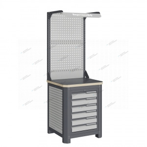 Рама верстака выполнена их холоднокатаной стали. Опоры допускают частичную регулировку по высоте для компенсации неровности пола. Все металлические элементы покрыты полиэфирной порошковой краской, обеспечивающей хорошую износостойкость покрытия и невосприимчивость его к моющим средствам и смазочным веществам. Верстак имеет декларацию соответствия ТР ТС 025/2012 «О безопасности мебельной продукции». Верстак имеет сертификат соответствия ГОСТ Р 58863-2020 «Столы производственные. Верстаки из металла. Общие технические условия». Столешница состоит из листа влагостойкой фанеры марки ФСФ толщиной 40 мм, которая покрыта лаком-антисептиком и листом горячекатаной стали толщиной 5 мм. Глубина столешниц 743 мм. Максимальная масса груза, равномерно распределенного по столешнице, составляет 1500 кг. Модуль верстака выполнен сварными. Ящики в модулях устанавливаются на шариковых телескопических направляющих полного выдвижения. В модуле S6 установлено шесть малых ящиков. Внутренние размеры малых ящиков (ВхШхГ), не более: 75 х 340 х 500 мм. Максимально допустимая масса груза, равномерно распределенного по поверхности любого выдвижного ящика 31 кг. Модули с ящиками снабжены общим центральным замком с поворотом ригеля 180 градусов и подпружиненной тягой. В комплекте два ключа для каждого замка. Квадратная перфорация на элементах верстака предназначена для установки крючков, держателей и других аксессуаров, имеет размеры: квадрат 12х12мм. шаг 38мм. Экран (перфорированная панель) верстака выполнен с квадратной перфорацией 12х12 мм с шагом 38 мм для установки крючков, держателей и других аксессуаров. Экран крепятся к столешнице с помощью специальных кронштейнов. Максимальная масса груза, равномерно распределенного по поверхности экрана, составляет 71 кг. Комплект освещения устанавливается над верстаком. В комплекте идет защитный козырек, кронштейны и лампа с магнитными креплениями, которые позволяют менять ее положение. Характеристики **Габариты и вес товара с упаковкой Общий вес с упаковкой - 0 кг Упаковка Размеры упаковки (Д*Ш*В), мм Вес, кг Упаковка №1 x x 0 ** Теоретический вес