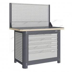Рама верстака выполнена их холоднокатаной стали. Опоры допускают частичную регулировку по высоте для компенсации неровности пола. Все металлические элементы покрыты полиэфирной порошковой краской, обеспечивающей хорошую износостойкость покрытия и невосприимчивость его к моющим средствам и смазочным веществам. Верстак имеет декларацию соответствия ТР ТС 025/2012 «О безопасности мебельной продукции». Верстак имеет сертификат соответствия ГОСТ Р 58863-2020 «Столы производственные. Верстаки из металла. Общие технические условия». Столешница состоит из листа влагостойкой фанеры марки ФСФ толщиной 40 мм, которая покрыта лаком-антисептиком и листом горячекатаной стали толщиной 5 мм. Глубина столешниц 743 мм. Максимальная масса груза, равномерно распределенного по столешнице, составляет 1500 кг. Модуль верстака выполнен сварными. Ящики в модулях устанавливаются на шариковых телескопических направляющих полного выдвижения. В модуле L5 установлено четыре малых ящика и один большой ящик. Внутренние размеры малых ящиков (ВхШхГ), не более: 75 х 755 х 500 мм. Внутренние размеры больших ящиков (ВхШхГ), не более: 172 х 755 х 500 мм. Максимально допустимая масса груза, равномерно распределенного по поверхности любого выдвижного ящика 31 кг. Модули с ящиками снабжены общим центральным замком с поворотом ригеля 180 градусов и подпружиненной тягой. В комплекте два ключа для каждого замка. Квадратная перфорация на элементах верстака предназначена для установки крючков, держателей и других аксессуаров, имеет размеры: квадрат 12х12мм. шаг 38мм. Экран (перфорированная панель) верстака выполнен с квадратной перфорацией 12х12 мм с шагом 38 мм для установки крючков, держателей и других аксессуаров. Экран крепятся к столешнице с помощью специальных кронштейнов. Максимальная масса груза, равномерно распределенного по поверхности экрана, составляет 71 кг. Характеристики **Габариты и вес товара с упаковкой Общий вес с упаковкой - 0 кг Упаковка Размеры упаковки (Д*Ш*В), мм Вес, кг Упаковка №1 x x 0 ** Теоретический вес