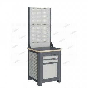 Рама верстака выполнена их холоднокатаной стали. Опоры допускают частичную регулировку по высоте для компенсации неровности пола. Все металлические элементы покрыты полиэфирной порошковой краской, обеспечивающей хорошую износостойкость покрытия и невосприимчивость его к моющим средствам и смазочным веществам. Верстак имеет декларацию соответствия ТР ТС 025/2012 «О безопасности мебельной продукции». Верстак имеет сертификат соответствия ГОСТ Р 58863-2020 «Столы производственные. Верстаки из металла. Общие технические условия». Столешница состоит из листа влагостойкой фанеры марки ФСФ толщиной 40 мм, которая покрыта лаком-антисептиком и листом горячекатаной стали толщиной 5 мм. Глубина столешниц 743 мм. Максимальная масса груза, равномерно распределенного по столешнице, составляет 1500 кг. Модуль верстака выполнен сварными. Ящики в модулях устанавливаются на шариковых телескопических направляющих полного выдвижения. В модуле S9 установлено два малых ящика, дверь и одна полка. Внутренние размеры малого ящика (ВхШхГ), не более: 75 х 340 х 500 мм. Дверь имеет размеры (ВхШхГ), не более: 346 х 367 х 25 мм. Полка модуля имеет размеры (ВхШхГ), не более: 25 х 367 х 510 мм. Максимально допустимая масса груза, равномерно распределенного по поверхности любого выдвижного ящика и полки 31 кг. Модули с ящиками снабжены общим центральным замком с поворотом ригеля 180 градусов и подпружиненной тягой. В комплекте два ключа для каждого замка. Квадратная перфорация на элементах верстака предназначена для установки крючков, держателей и других аксессуаров, имеет размеры: квадрат 12х12мм. шаг 38мм. Экран (перфорированная панель) верстака выполнен с квадратной перфорацией 12х12 мм с шагом 38 мм для установки крючков, держателей и других аксессуаров. Экран крепятся к столешнице с помощью специальных кронштейнов. Максимальная масса груза, равномерно распределенного по поверхности экрана, составляет 71 кг. Характеристики **Габариты и вес товара с упаковкой Общий вес с упаковкой - 0 кг Упаковка Размеры упаковки (Д*Ш*В), мм Вес, кг Упаковка №1 x x 0 ** Теоретический вес