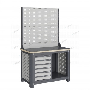 Рама верстака выполнена их холоднокатаной стали. Опоры допускают частичную регулировку по высоте для компенсации неровности пола. Все металлические элементы покрыты полиэфирной порошковой краской, обеспечивающей хорошую износостойкость покрытия и невосприимчивость его к моющим средствам и смазочным веществам. Верстак имеет декларацию соответствия ТР ТС 025/2012 «О безопасности мебельной продукции». Верстак имеет сертификат соответствия ГОСТ Р 58863-2020 «Столы производственные. Верстаки из металла. Общие технические условия». Столешница состоит из листа влагостойкой фанеры марки ФСФ толщиной 40 мм, которая покрыта лаком-антисептиком и листом горячекатаной стали толщиной 5 мм. Глубина столешниц 743 мм. Максимальная масса груза, равномерно распределенного по столешнице, составляет 1500 кг. Модуль верстака выполнен сварными. Ящики в модулях устанавливаются на шариковых телескопических направляющих полного выдвижения. В модуле S6 установлено шесть малых ящиков. Внутренние размеры малых ящиков (ВхШхГ), не более: 75 х 340 х 500 мм. Максимально допустимая масса груза, равномерно распределенного по поверхности любого выдвижного ящика 31 кг. Комплект полка-стенка SW1. Размеры полки (ВхШхГ), не более: 35 х 415 х 619 мм. Размеры стенки (ВхШхГ), не более: 652 х 415 х 25 мм. Максимально допустимая масса груза, равномерно распределенного по поверхности полки 31 кг. Модули с ящиками снабжены общим центральным замком с поворотом ригеля 180 градусов и подпружиненной тягой. В комплекте два ключа для каждого замка. Квадратная перфорация на элементах верстака предназначена для установки крючков, держателей и других аксессуаров, имеет размеры: квадрат 12х12мм. шаг 38мм. Экран (перфорированная панель) верстака выполнен с квадратной перфорацией 12х12 мм с шагом 38 мм для установки крючков, держателей и других аксессуаров. Экран крепятся к столешнице с помощью специальных кронштейнов. Максимальная масса груза, равномерно распределенного по поверхности экрана, составляет 71 кг. Характеристики **Габариты и вес товара с упаковкой Общий вес с упаковкой - 0 кг Упаковка Размеры упаковки (Д*Ш*В), мм Вес, кг Упаковка №1 x x 0 ** Теоретический вес