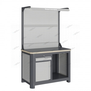 Рама верстака выполнена их холоднокатаной стали. Опоры допускают частичную регулировку по высоте для компенсации неровности пола. Все металлические элементы покрыты полиэфирной порошковой краской, обеспечивающей хорошую износостойкость покрытия и невосприимчивость его к моющим средствам и смазочным веществам. Верстак имеет декларацию соответствия ТР ТС 025/2012 «О безопасности мебельной продукции». Верстак имеет сертификат соответствия ГОСТ Р 58863-2020 «Столы производственные. Верстаки из металла. Общие технические условия». Столешница состоит из листа влагостойкой фанеры марки ФСФ толщиной 40 мм, которая покрыта лаком-антисептиком и листом горячекатаной стали толщиной 5 мм. Глубина столешниц 743 мм. Максимальная масса груза, равномерно распределенного по столешнице, составляет 1500 кг. Модуль верстака выполнен сварными. Ящики в модулях устанавливаются на шариковых телескопических направляющих полного выдвижения. В модуле S8 установлено один малый ящик и дверца. Внутренние размеры малого ящика (ВхШхГ), не более: 75 х 755 х 500 мм. Максимально допустимая масса груза, равномерно распределенного по поверхности полки или по поверхности любого выдвижного ящика - 31 кг. Полка модуля имеет размеры (ВхШхГ), не более: 25 х 367 х 510 мм. Комплект полка-стенка SW1. Размеры полки (ВхШхГ), не более: 35 х 415 х 619 мм. Размеры стенки (ВхШхГ), не более: 652 х 415 х 25 мм. Максимально допустимая масса груза, равномерно распределенного по поверхности полки 31 кг. Модули с ящиками снабжены общим центральным замком с поворотом ригеля 180 градусов и подпружиненной тягой. В комплекте два ключа для каждого замка. Квадратная перфорация на элементах верстака предназначена для установки крючков, держателей и других аксессуаров, имеет размеры: квадрат 12х12мм. шаг 38мм. Экран (перфорированная панель) верстака выполнен с квадратной перфорацией 12х12 мм с шагом 38 мм для установки крючков, держателей и других аксессуаров. Экран крепятся к столешнице с помощью специальных кронштейнов. Максимальная масса груза, равномерно распределенного по поверхности экрана, составляет 71 кг. Комплект освещения устанавливается над верстаком. В комплекте идет защитный козырек, кронштейны и лампа с магнитными креплениями, которые позволяют менять ее положение. Характеристики **Габариты и вес товара с упаковкой Общий вес с упаковкой - 0 кг Упаковка Размеры упаковки (Д*Ш*В), мм Вес, кг Упаковка №1 x x 0 ** Теоретический вес