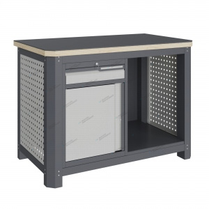 Рама верстака выполнена их холоднокатаной стали. Опоры допускают частичную регулировку по высоте для компенсации неровности пола. Все металлические элементы покрыты полиэфирной порошковой краской, обеспечивающей хорошую износостойкость покрытия и невосприимчивость его к моющим средствам и смазочным веществам. Верстак имеет декларацию соответствия ТР ТС 025/2012 «О безопасности мебельной продукции». Верстак имеет сертификат соответствия ГОСТ Р 58863-2020 «Столы производственные. Верстаки из металла. Общие технические условия». Столешница состоит из листа влагостойкой фанеры марки ФСФ толщиной 40 мм, которая покрыта лаком-антисептиком и листом горячекатаной стали толщиной 5 мм. Глубина столешниц 743 мм. Максимальная масса груза, равномерно распределенного по столешнице, составляет 1500 кг. Модуль верстака выполнен сварными. Ящики в модулях устанавливаются на шариковых телескопических направляющих полного выдвижения. В модуле S8 установлено один малый ящик и дверца. Внутренние размеры малого ящика (ВхШхГ), не более: 75 х 755 х 500 мм. Максимально допустимая масса груза, равномерно распределенного по поверхности полки или по поверхности любого выдвижного ящика - 31 кг. Полка модуля имеет размеры (ВхШхГ), не более: 25 х 367 х 510 мм. Комплект полка-стенка SW1. Размеры полки (ВхШхГ), не более: 35 х 415 х 619 мм. Размеры стенки (ВхШхГ), не более: 652 х 415 х 25 мм. Максимально допустимая масса груза, равномерно распределенного по поверхности полки 31 кг. Модули с ящиками снабжены общим центральным замком с поворотом ригеля 180 градусов и подпружиненной тягой. В комплекте два ключа для каждого замка. Квадратная перфорация на элементах верстака предназначена для установки крючков, держателей и других аксессуаров, имеет размеры: квадрат 12х12мм. шаг 38мм. Характеристики **Габариты и вес товара с упаковкой Общий вес с упаковкой - 0 кг Упаковка Размеры упаковки (Д*Ш*В), мм Вес, кг Упаковка №1 x x 0 ** Теоретический вес