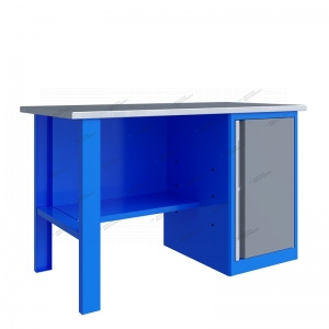 Верстак серии Technic 141.17.2 состоит из столешницы шириной 1396 мм, опоры, тумбы P7 с дверью и двумя полками и полки-стенки. Предназначен для выполнения сборочных, ремонтных, слесарных, монтажных и других видов работ на производстве, в сервисных центрах, мастерских, гаражах, а также для обучения технологии в учебных заведениях. Верстак представляет собой сборно-разборную конструкцию. Опорные элементы выполнены сварными из холоднокатаной стали. Верстак комплектуется полкой-стенкой, расположенной под столешницей для удобного размещения габаритного инструмента и оснастки. Все металлические элементы покрыты полиэфирной порошковой краской, обеспечивающей хорошую износостойкость покрытия и невосприимчивость его к моющим средствам и смазочным веществам. Цвет и текстура покрытия корпуса тумб, опор, полки-стенки, экранов и комплектов освещения RAL 5015, гладкая, полуматовая. Цвет и текстура покрытия ящиков и дверок верстака, кронштейнов экранов и косынок RAL 7037, гладкая, глянцевая. Цвет и текстура покрытия накладок ручек ящиков и дверок RAL 9006, гладкая, глянцевая. Столешница состоит из листа влагостойкой фанеры марки ФСФ толщиной 24 мм, которая покрыта лаком-антисептиком и листом оцинкованной холоднокатаной стали толщиной 1,2 мм. Глубина столешниц 696 мм. Максимальная масса груза, равномерно распределенного по столешнице - 750 кг. Тумба верстака - сварная.В тумбе P7 установлено две полки. Полки устанавливаются на парах специальных формованных зацепов, выполненных в боковых стенках тумбы. Имеется возможность смены стороны открывания двери. Дверь тумбы снабжена центральным замком с поворотом ригеля 180 градусов. В комплекте имеется два ключа. Максимальная масса груза, распределенного по поверхности полки и полки стенки, составляет 30 кг. Верстак имеет декларацию соответствия ТР ТС 025/2012 «О безопасности мебельной продукции». Верстак имеет сертификат соответствия ГОСТ Р 58863-2020 «Столы производственные. Верстаки из металла. Общие технические условия». Комплектация Столешница PTT141 (14.696.24.1) Опора P1 – 1 шт. Тумба P7 – 1 шт. Полка-стенка PSW2 (14-18.700) – 1 шт. Характеристики **Габариты и вес товара с упаковкой Общий вес с упаковкой - 0 кг Упаковка Размеры упаковки (Д*Ш*В), мм Вес, кг Упаковка №1 x x 0 ** Теоретический вес