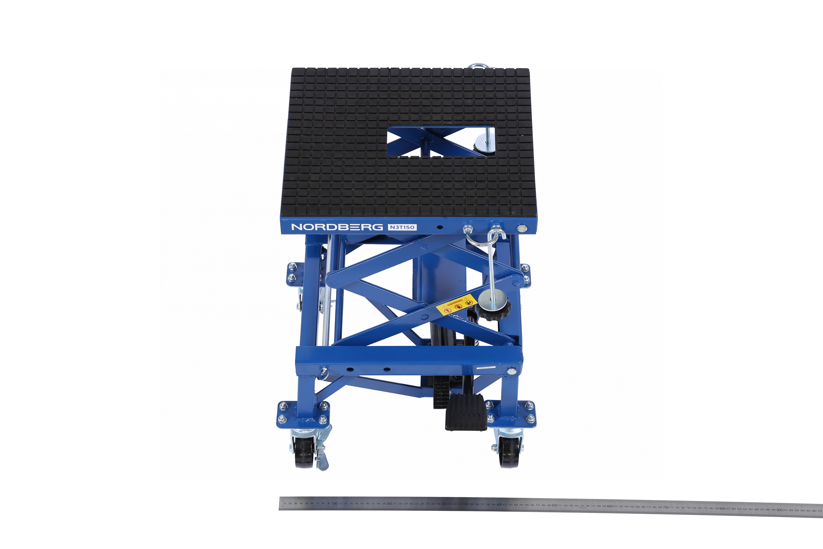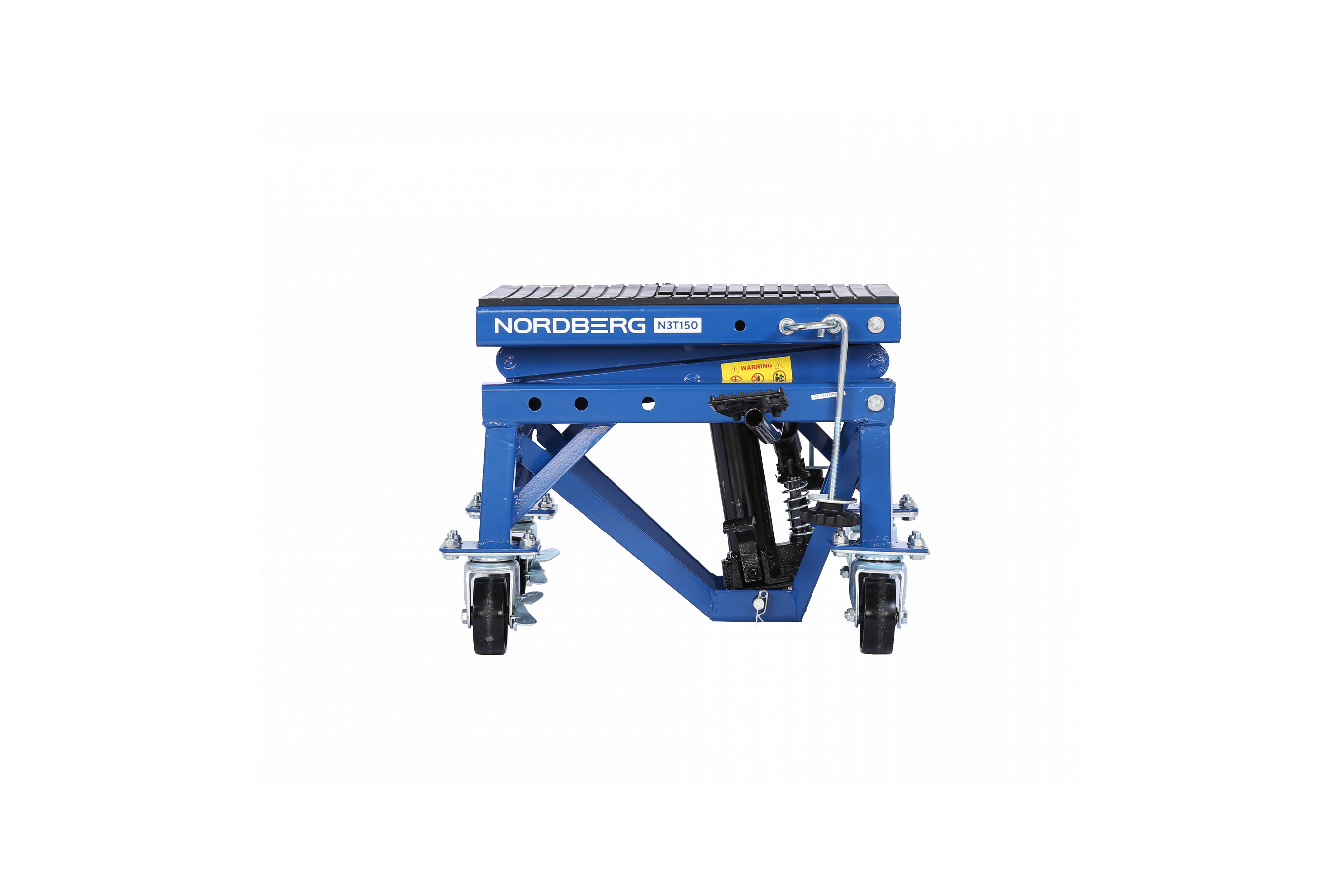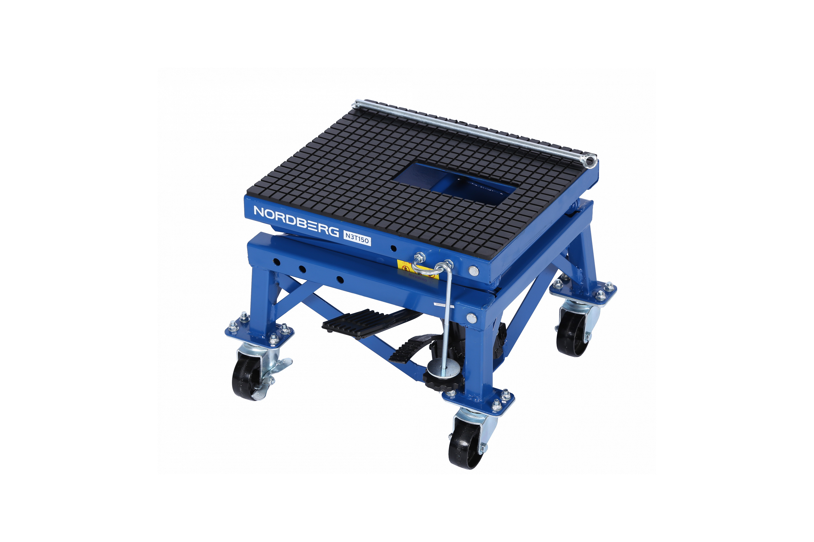 О товаре NORDBERG N3T150 — профессиональный подкатной мотоподъёмник. Применяется в мастерских, СТО и гаражах. ФУНКЦИОНАЛ Платформенный подъёмник, предназначенный для подъёма и фиксации мотоциклов и другого двухколёсного транспорта при проведении технического обслуживания и ремонтных работ. ПРЕИМУЩЕСТВА Грузоподъёмность 136 кг — подходит для большинства моделей мотоциклов, Высота подъёма: от 350 до 870 мм — широкий диапазон регулировки для удобного доступа, Механический привод — не требует подключения к электросети. УДОБСТВО ИСПОЛЬЗОВАНИЯ Педаль подъёма платформы — подъём без усилий, руки остаются свободными, Педаль опускания — плавное и контролируемое снижение платформы, Поворотные колёса со стопором — для удобного перемещения и надёжной фиксации подъёмника, Резиновый коврик и крепление с крюком — защита мотоцикла от повреждений и устойчивость на платформе. NORDBERG N3T150 — удобное и надёжное решение для профессионального и гаражного обслуживания мототехники. Показать полностью Скрыть Характеристики Грузоподъемность максимальная, кг 136 Минимальная высота подъема, см 35 Максимальная высота подъема, см 87 Габариты платформы, мм 410х350 **Габариты и вес товара с упаковкой Общий вес с упаковкой - 28 кг Упаковка Размеры упаковки (Д*Ш*В), мм Вес, кг Упаковка №1 500 x 440 x 370 28 ** Теоретический вес