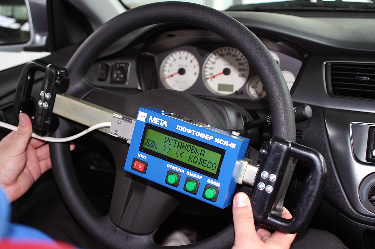- измерение и отбражение результатов единичных измерений суммарного люфта рулевого управления по началу движения колес в повороте,