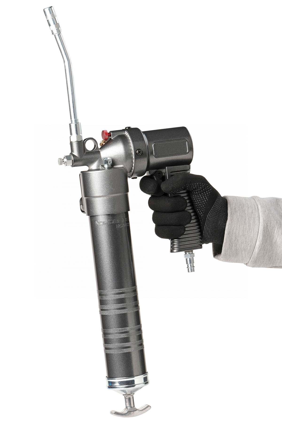 Шприц плунжерный пневматический для густой смазки с быстросъёмным соединением головки на тубу и поворотом рукоятки, 400 мл no3402