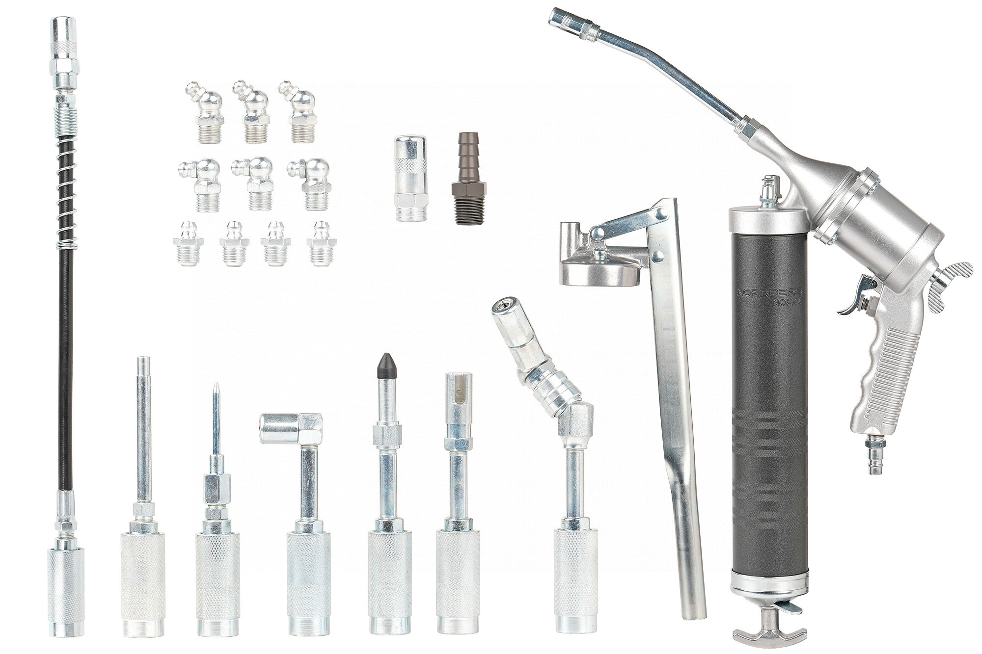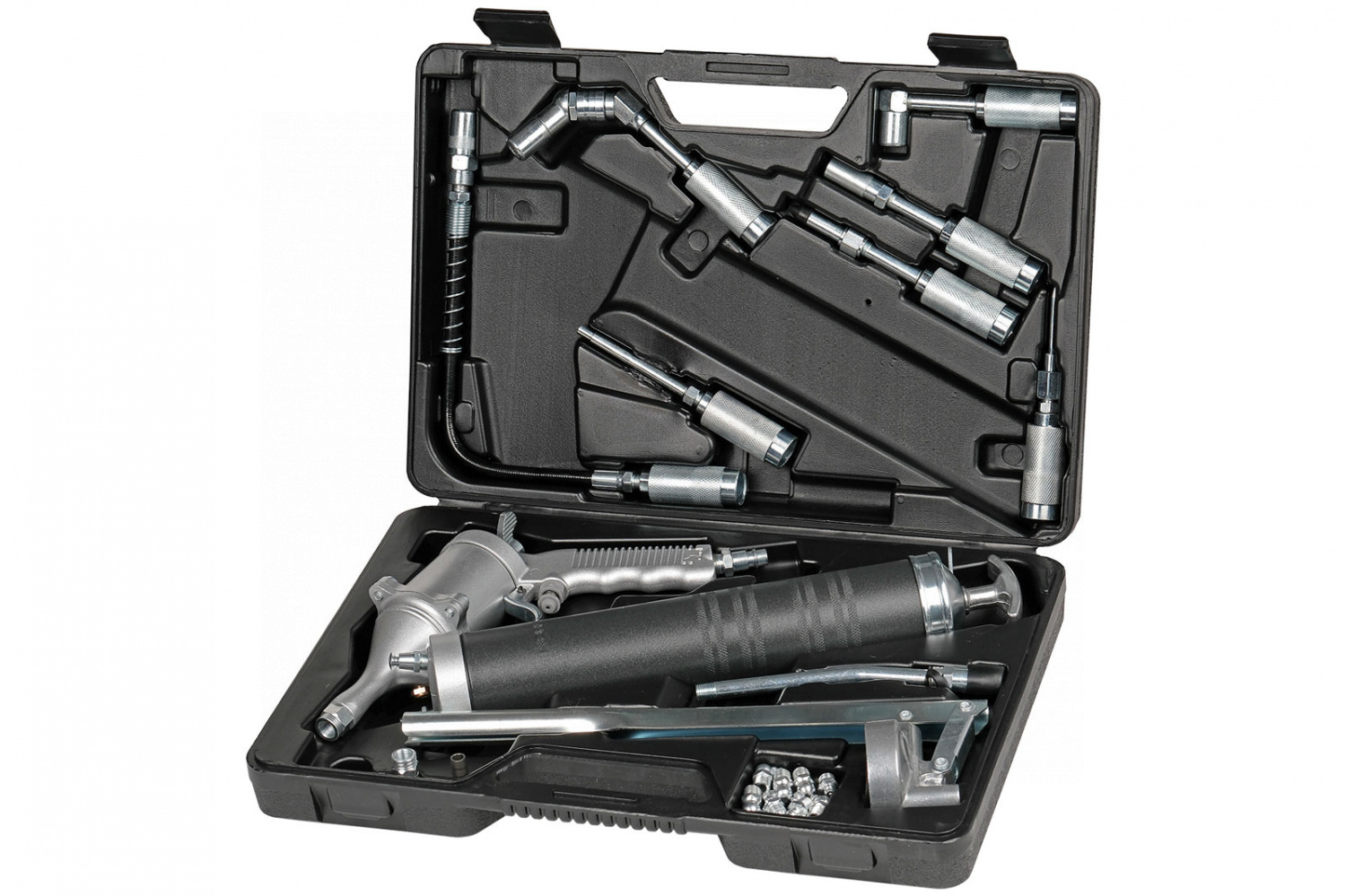 Шприц плунжерный пневматический с поворотом рукоятки, 400 мл, с насадками в кейсе no3404