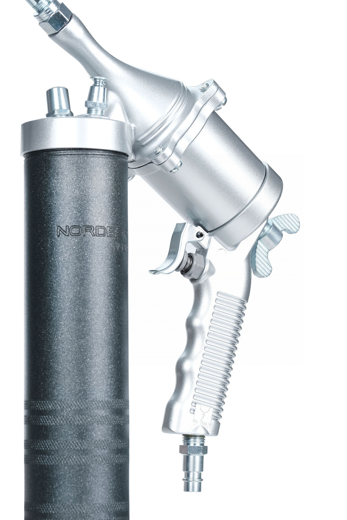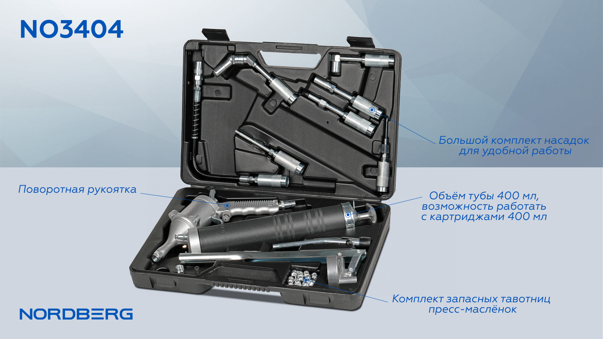 О товаре Плунжерный шприц для густой смазки NORDBERG NO3404 – оборудование для обслуживания узлов и агрегатов автотранспортной техники и промышленного оборудования. ФУНКЦИОНАЛ Позволяет точно и равномерно за счёт сжатого воздуха или вручную подавать пластичные смазочные материалы, обеспечивая эффективную смазку узлов, подшипников, сочленений и прочих элементов транспортных средств через пресс-масленки и другие технологические элементы для продления их срока службы и снижения износа. Рассчитан на работы со смазками с вязкостью по ISO до NLGI 3 включительно. ПРЕИМУЩЕСТВА Набор насадок для работы под разными углами, в труднодоступных местах: шарнирная насадка, насадка на гибком шланге, насадки в виде иглы и с резиновым наконечником Поворотная рукоятка позволяет выбрать наиболее удобную позицию для нагнетания смазки Оснащен клапаном для стравливания воздуха и клапаном для заправки шприца Может использоваться для картриджей со смазкой объемом 400 мл Комплект запасных пресс-масленок с углами подключения 45°, 90°, 180° Пластиковый кейс под все компоненты набора Несколько типов штуцеров на выбор для подключения сжатого воздуха УДОБСТВО ИСПОЛЬЗОВАНИЯ Широкий выбор насадок и возможность использования пневмопривода наряду с ручным, делают этот шприц отличным выбором для профессионального использования. Использование плунжерного шприца в кейсе NORDBERG NO3404 повысит качество сервисных работ при техническом обслуживании узлов и агрегатов автомобилей. Показать полностью Скрыть Характеристики Объем, мл 400 Производительность 15 мл/ 40 качков Тип шприца плунжерный пневматический Минимальное давление на входе, бар 6 Максимальное давление на входе, бар 6,5 Минимальное выходное давление, бар 250 Работа с картриджем, мл 400 Воздушный клапан есть Диаметр впускного отверстия, дюйм 1/4 NPT Шланг в комплекте да Подключение вертикально **Габариты и вес товара с упаковкой Общий вес с упаковкой - 4.5 кг Упаковка Размеры упаковки (Д*Ш*В), мм Вес, кг Упаковка №1 400 x 80 x 270 4.5 ** Теоретический вес
