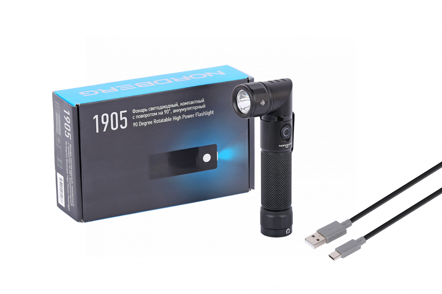 Фонарь светодиодный, компактный с поворотом на 90°, аккумуляторный 1905