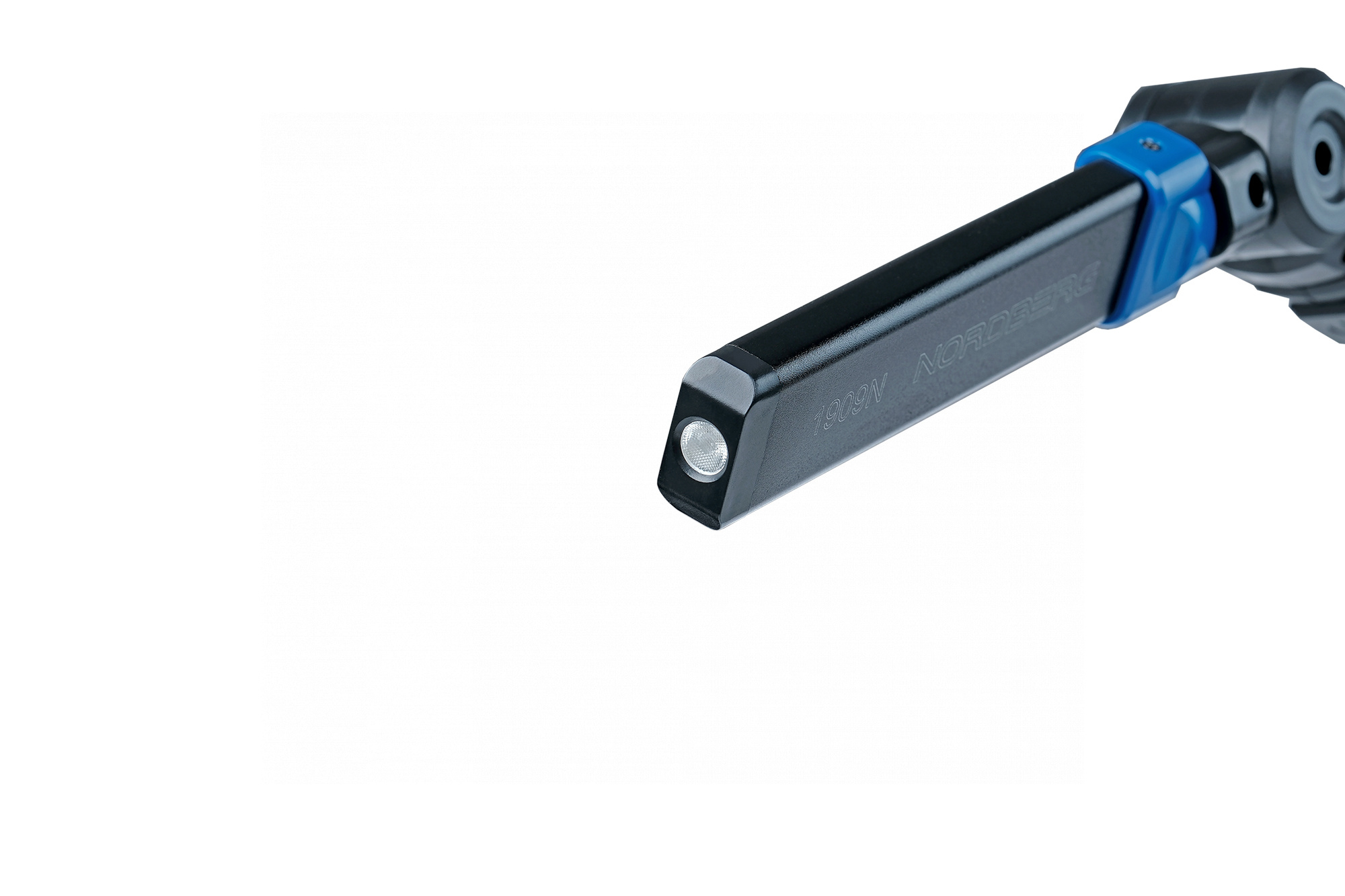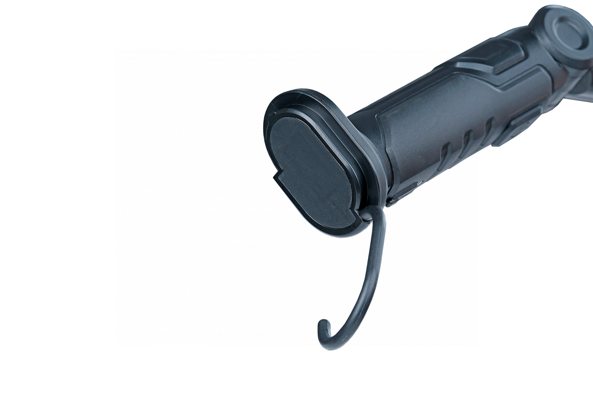 О товаре Светодиодный, складной фонарь NORDBERG 1909N представляет собой мощный источник света, который компенсирует недостаток освещения при проведении ремонта, обслуживания или осмотра необходимых деталей и механизмов автомобиля. Удобство эксплуатации обеспечивается складной конструкцией – фонарь поворачивается на 90° в каждую сторону от вертикали. Поворотное основание позволяет светящую часть повернуть на 180° вокруг своей оси. Автомобильный имеет встроенный Li-Ion аккумулятор, мощностью 3,7 В и емкостью 3000 мА·ч. В конструкции фонаря два диода - COB и SMD. В аккумуляторном фонаре 1909N предусмотрено три режима работы: основной свет торцевой свет режим затемнения. Основной режим работы освещает на расстоянии до 60 метров и имеет цветовую температуру в 6000K-6500K. Световой поток основного освещения составляет 400 Лм. В полную силу фонарь может светить 2,5 – 3 часа. В режиме минимального затемнения световой поток составляет 10 Лм, а работа фонаря увеличивается до 8 – 9 часов. Торцевое освещение имеет световой поток в 80 Лм и время работы в 8 – 9 часов. Светодиодный фонарь 1909N оснащен складывающимся крюком для подвеса и мощным магнитом в основании рукоятки. Лампу можно крепить к любым металлическим поверхностям, например, к капоту или крылу автомобиля. Это обеспечит удобство при проведении ремонта или осмотра деталей и механизмов автомобиля. Корпус фонаря 1909N выполнен из прочного пластика, защищающего его от случайных ударов и падений. Рукоять произведена с обрезиненной вставкой для надежной фиксации в руке пользователя. Зарядка встроенного аккумулятора осуществляется через разъем Type-C. Кабель для зарядки идет в комплекте с фонарем. Время, занимаемое до полной зарядки, составляет от 3 до 3,5 часов. Комплектация: Фонарь 1шт. Кабель USB type-C 1 шт. Инструкция 1 шт. Показать полностью Скрыть Характеристики Количество светодиодов, шт. 1+1 Световой поток основного освещения, лм 400 Световой поток торцевого освещения, лм 80 Тип питания Li-ion аккумулятор Li-ion аккумулятор 3,7 В / 3000 мА·ч Сетевой USB-адаптер кабель USB Type-C Тип лампы светодиодная Напряжение, В 220 Время зарядки/работы, ч 3-3,5/3-9 Цветовая температура, К 6000 Дальность освещения, м 60 Степень защиты IK06, IP20 **Габариты и вес товара с упаковкой Общий вес с упаковкой - 0.455 кг Упаковка Размеры упаковки (Д*Ш*В), мм Вес, кг Упаковка №1 370 x 120 x 50 0.455 ** Теоретический вес