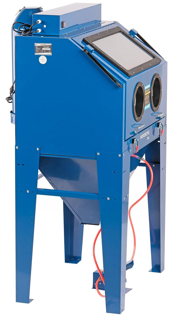 О товаре Пескоструйная камера NORDBERG NS3 для обработки воздушно-пескоструйным способом поверхностей изделий, снятия ржавчины, грунта, слоев краски, матирования. Работает от сжатого воздуха Позволяет производить обработку без создания специальных площадок и дополнительной защиты оператора Загрузка деталей через фронтальную дверь Не требует дополнительной вытяжки Для удобства управления педаль подачи песка Толстый металл корпуса Размеры камеры: 945х605х605 мм Расход воздуха 300-400 л Комплектация: Перчатки Пистолет пескоструйный Сопла 4 шт Педаль Лампа Воздушный фильтр Адаптер для подключения подачи воздуха Уплотнительная лента Защитная пленка Рекомендуем использовать в качестве абразива порошок NORDBERG NS16CS Показать полностью Скрыть Характеристики Загрузка фронтальная Размер рабочей камеры с поддоном, мм 910x635x660 Напряжение питания подсветки, В 220 Объем емкости, л 350 Рабочее давление, бар 5,5 Расход воздуха, л/мин 300-400 Напряжение, В 220 Максимальное входное давление, бар 8,6 Вместимость абразива, л 18 Тип абразива стекло, корунд, пластмассовый песок и пр. **Габариты и вес товара с упаковкой Общий вес с упаковкой - 105 кг Упаковка Размеры упаковки (Д*Ш*В), мм Вес, кг Упаковка №1 1000 x 735 x 825 105 ** Теоретический вес