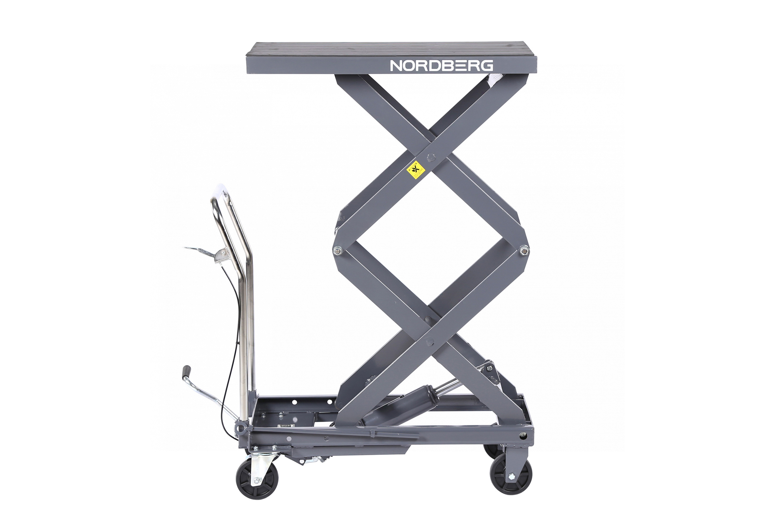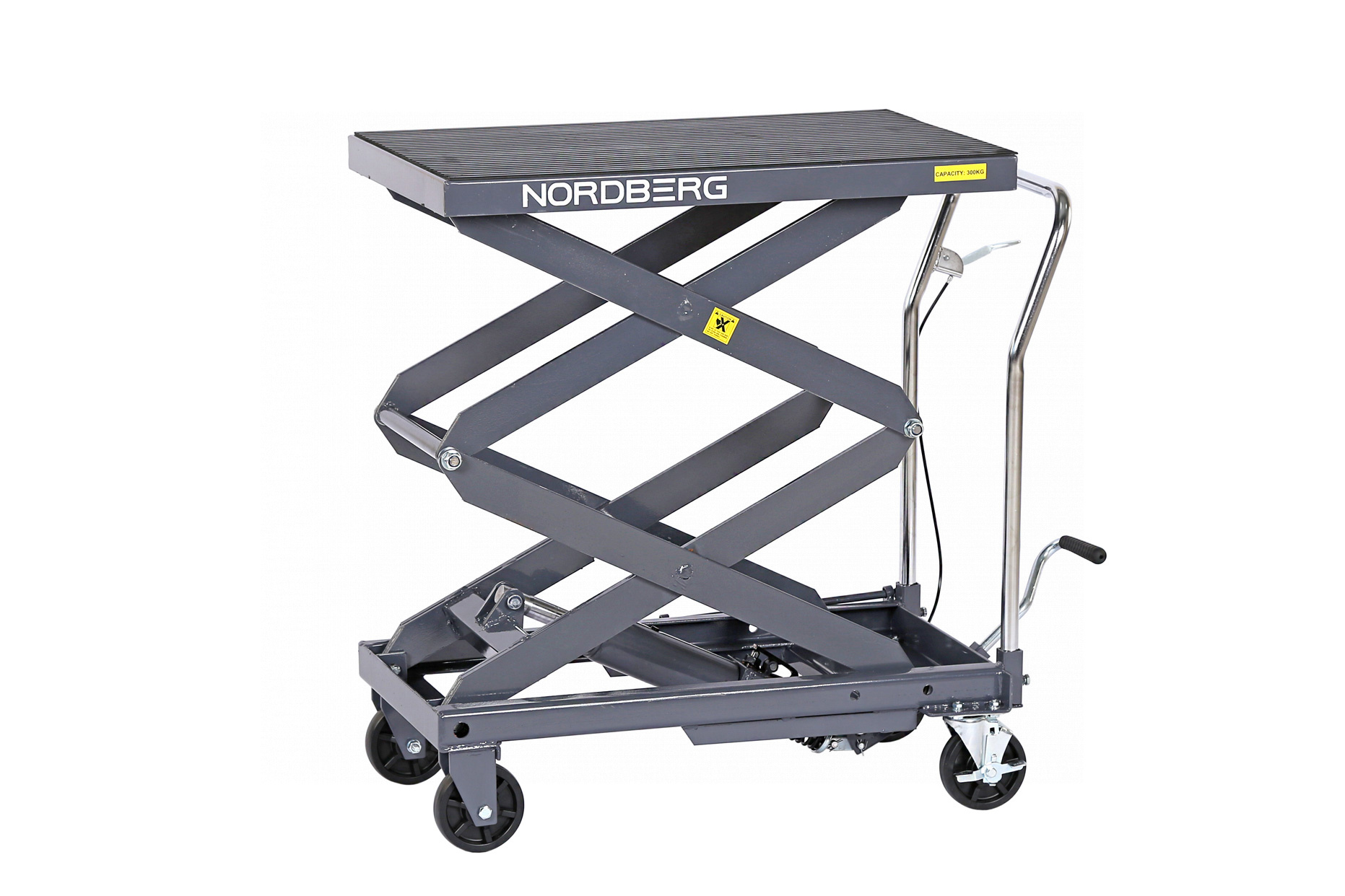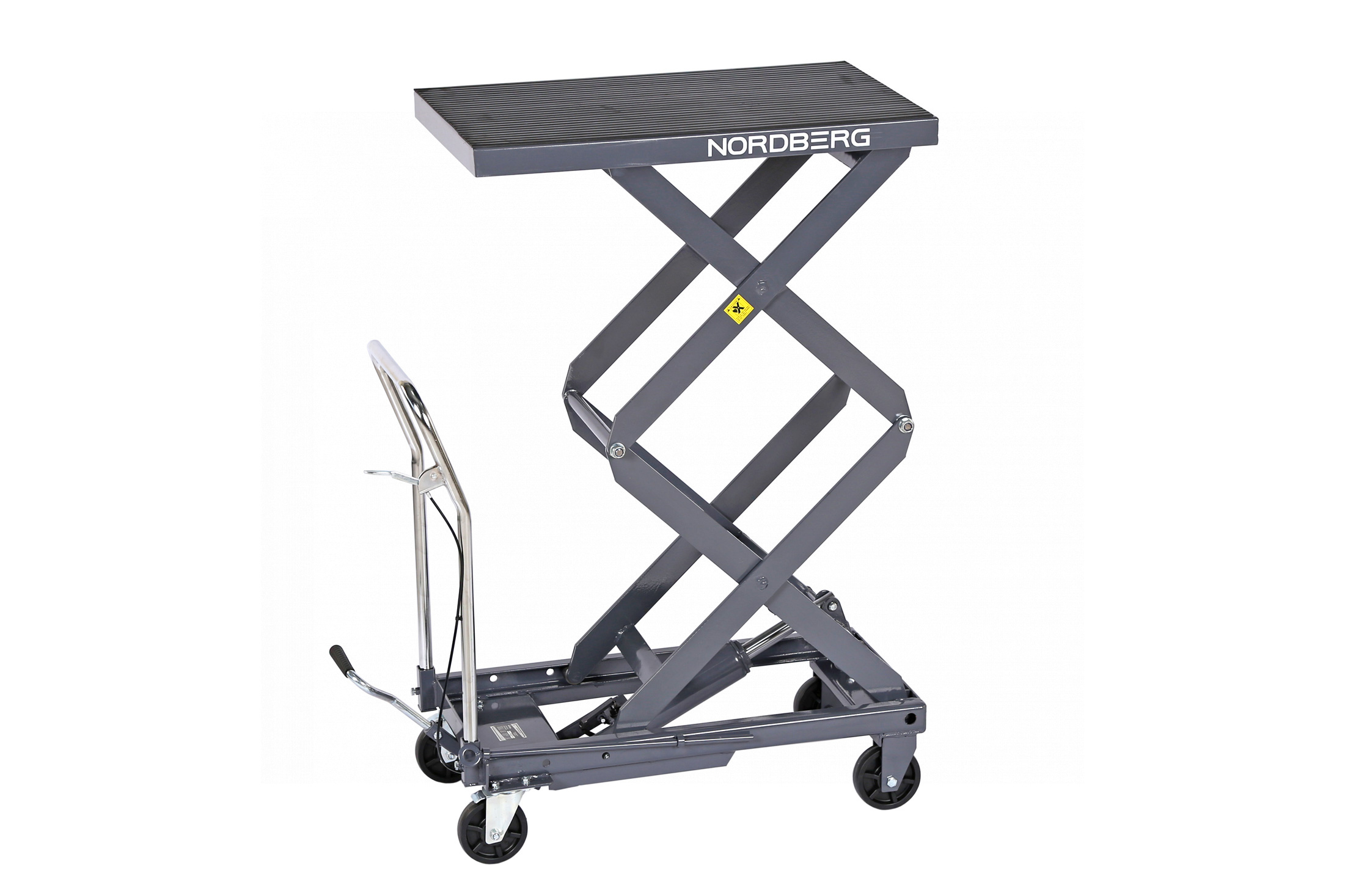 О товаре Гидравлический подъемный стол, двойные ножницы, NORDBERG N3T301G – подъемное оборудование для диагностических или ремонтных работ в автосервисах, на транспортных предприятиях и в складских помещениях. ФУНКЦИОНАЛ Предназначен для подъема и удерживания, а также перемещения грузов весом до 300 кг: узлов и агрегатов транспортных и иных средств с целью облегчить работу специалистов, выполняющих монтаж/демонтаж, ремонт и обслуживание в цеху или рабочей площадке. Позволяет удобно снимать КПП, редукторы, мосты, а также использовать при снятии груза из кузова грузовика. ПРЕИМУЩЕСТВА Высота подъема до 125 см. Совмещение платформенной тележки, ножничного подъемного механизма и рабочего стола в одном устройстве. Ножной гидравлический привод позволяет быстро и эффективно поднимать груз без лишнего физического усилия со стороны оператора - его руки остаются свободными. Опускание груза с помощью нажатия рычага на ручке подъемного стола гарантирует плавное и контролируемое опускание стола. Система стопорения при нажатии рычага и на максимальном подъеме Эластичный съемный резиновый защитный коврик гарантирует безопасное расположение агрегатов на рабочей поверхности стола. УДОБСТВО ИСПОЛЬЗОВАНИЯ Легкость управления с помощью рукоятки с рычагом для спуска платформ Мобильность благодаря износостойким полиуретановым колесам, снабженным стопорами Платформенная тележка с подъемным столом с ножной педалью NORDBERG N3T301G обеспечит комфортную работу на нужной высоте при обслуживании легкового и грузового транспорта в автосервисах и на СТО. Показать полностью Скрыть Характеристики Грузоподъемность максимальная, т 0,3 Минимальная высота подхвата, см 33 Максимальная высота подъема, см 125 Габариты платформы, см 81x50 **Габариты и вес товара с упаковкой Общий вес с упаковкой - 92.5 кг Упаковка Размеры упаковки (Д*Ш*В), мм Вес, кг Упаковка №1 920 x 530 x 400 92.5 ** Теоретический вес
