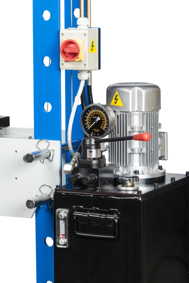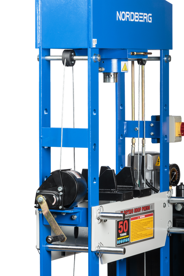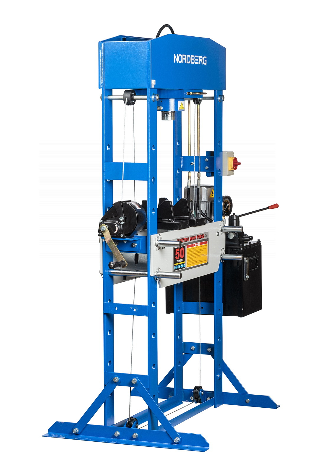О товаре Гидравлический пресс с электрическим приводом NORDBERG N3650E – оборудование для выполнения ремонтных работ в автосервисах и СТО. ФУНКЦИОНАЛ Используется при следующих ремонтно-монтажных работах: выпрессовки подшипников и втулок, правки различных деталей, запрессовывания, для контроля допустимой нагрузки и надежности сварочных швов и пр. ПРЕИМУЩЕСТВА Максимальное усилие 50 т Регулировка положения рабочего стола с помощью лебедки 2 пластины-трапеции Автоматический возврат поршня Надежная сварная рама обеспечивает устойчивость конструкции Гидравлический насос с электрическим приводом Порошковое покрытие корпуса препятствует образованию коррозии Защита от перегрузок благодаря предохранительному клапану УДОБСТВО ИСПОЛЬЗОВАНИЯ Регулируемый рабочий стол и перемещение гидравлического цилиндра по оси позволяет работать с крупногабаритными деталями. Глицеринозаполненный манометр большого диаметра для контроля силы нагрузки расположен на уровне глаз. КОМПЛЕКТАЦИЯ Гидравлический пресс NORDBERG N3650E Паспорт-инструкция Гидравлический пресс с электрическим приводом NORDBERG N3650E – незаменимое оборудование в автосервисах, СТО, гаражах, позволяющее эффективно и быстро выполнять различные ремонтные работы. Показать полностью Скрыть Характеристики Усилие, т 50 Ширина рабочего стола, мм 730 Глубина рабочего стола, мм 200 Минимальный подъем станины, мм 300 Максимальный подъем станины, мм 1050 Горизонтальное смещение, мм 240 Гидравлический ход, мм 200 Привод насоса электрогидравлический исполнение напольный Объем масла, мл 2400 Потребляемая мощность, кВт 1,5 Напряжение, В 380 **Габариты и вес товара с упаковкой Общий вес с упаковкой - 392 кг Упаковка Размеры упаковки (Д*Ш*В), мм Вес, кг Упаковка №1 315 x 980 x 2010 320 Упаковка №2 360 x 530 x 780 72 ** Теоретический вес
