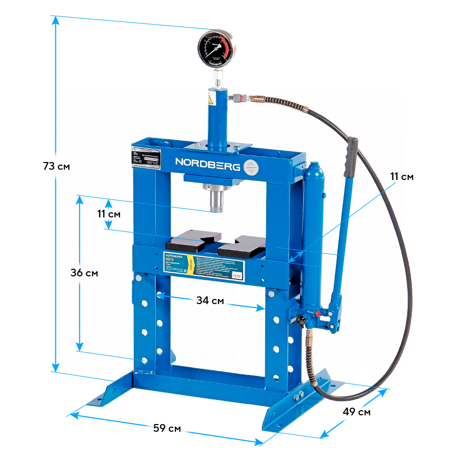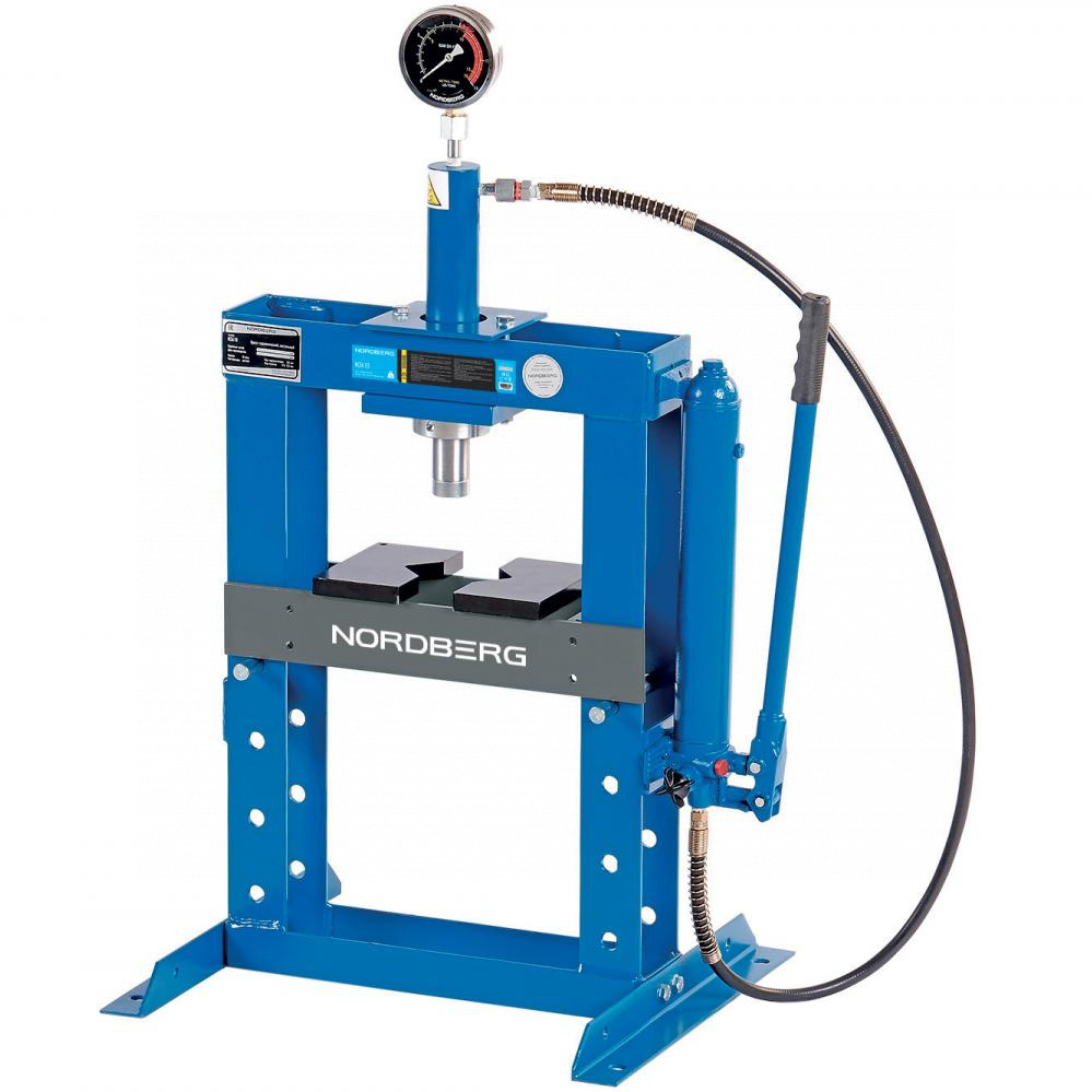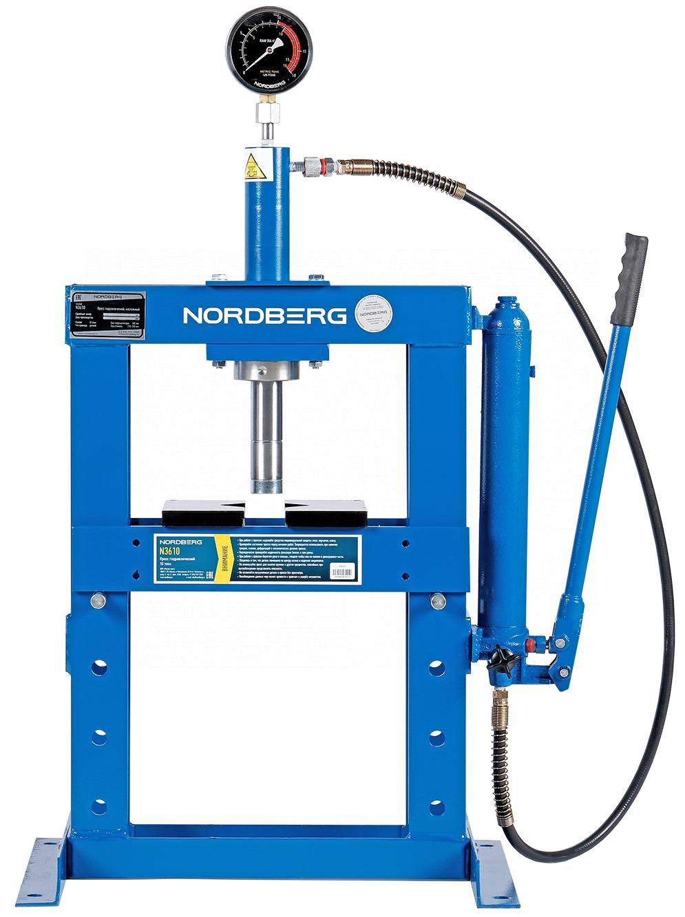 О товаре Гидравлический пресс с ручным приводом NORDBERG N3610 – оборудование для выполнения различных ремонтных работ в автосервисах и СТО. ФУНКЦИОНАЛ Используется при следующих ремонтно-монтажных работах: выпрессовки подшипников и втулок, правки валов, осей, профилей, для прессования заготовок ПРЕИМУЩЕСТВА Максимальное усилие 10 тонн Порошковое покрытие корпуса препятствует образованию коррозии Регулируемый рабочий стол Гидравлический насос с ручным приводом. УДОБСТВО ИСПОЛЬЗОВАНИЯ Две пластины трапеции для надежного упора Манометр для контроля рабочего давления расположен на уровне глаз. КОМПЛЕКТАЦИЯ Гидравлический пресс NORDBERG N3610 Пластины трапеции Паспорт-инструкция Пресс гидравлический NORDBERG N3610 – незаменимое оборудование в автосервисах, гаражах, позволяющее эффективно и быстро выполнять различные ремонтные работы. Показать полностью Скрыть Характеристики Усилие, т 10 Ширина рабочего стола, мм 340 Глубина рабочего стола, мм 115 Минимальный подъем станины, мм 110 Максимальный подъем станины, мм 364 Гидравлический ход, мм 180 Привод насоса ручной Объем масла, мл 500 **Габариты и вес товара с упаковкой Общий вес с упаковкой - 52 кг Упаковка Размеры упаковки (Д*Ш*В), мм Вес, кг Упаковка №1 750 x 530 x 140 52 ** Теоретический вес
