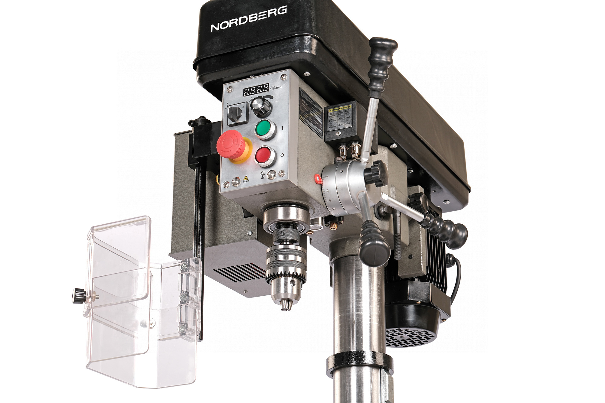 О товаре Станок сверлильный профессиональный (750 Вт, 25 мм, вариатор скорости, нарезание резьбы, тиски) NORDBERG ND25116PV Применяются для сверления отверстий в древесине, металле, пластиках и других материалах Функция нарезания резьбы Жесткое основание рабочего стола выполнено из чугуна, выдерживает нагрузку до 60кг В комплекте станочные тиски Модели ND2053PV, ND25116PV, ND2554PV оснащены вариатором скорости сверления до 2100об/мин Сверлильная головка и рабочий стол вращается на 360° В моделях ND2053P, ND2554P, ND2053PV, ND2554PV угол наклона стола изменяется на 45° Контроль глубины сверления Регулировка натяжения ремней на внешней части корпуса станка Прозрачный защитный экран препятствует вылету стружки Ременная передача закрыта прочным кожухом Тип патрона: ключевой Размер патрона: B16, 1-16мм Лазерный указатель Подсветка рабочей зоны Показать полностью Скрыть Характеристики Мощность двигателя, Вт 750 Ø зажимаемого сверла, мм 1-16 Рабочий ход шпинделя, мм 80 Диапазон скорости, об/мин (50/60Гц) 0-2100 Конус шпинделя MT2(КМ2) Макс. расстояние между осью шпинделя и колонной, мм 190 Макс. расстояние между концом шпинделя и столом, мм 850 Рабочих ход, мм 430 Размер стола, мм 320x320 Размер основания, мм 600x385 Диаметр колонны, мм 80 Напряжение 380В **Габариты и вес товара с упаковкой Общий вес с упаковкой - 136.4 кг Упаковка Размеры упаковки (Д*Ш*В), мм Вес, кг Упаковка №1 1550 x 660 x 440 136.4 ** Теоретический вес