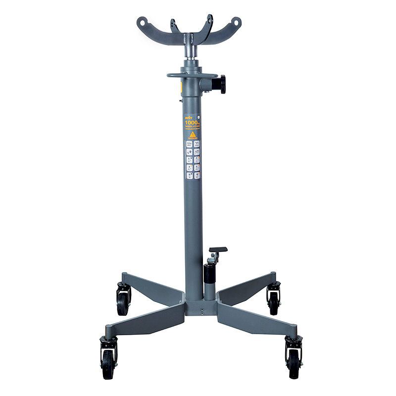 Данная трансмиссионная стойка компактна и способна выдерживать достаточно большие нагрузки во многом благодаря имеющемуся гидравлическому приводу. Телескопический шток гидроцилиндра поднимается на высоту 2005 мм, что позволяет использовать стойку даже в смотровой яме. Хромированный шток гидроцилиндра надежно защищён от коррозии. Гидравлический насос с педальным приводом и защитный клапан, контролирующий перегрузку, создают удобство и безопасность в работе. Гидравлический двухступенчатый насос обеспечивает быстрый подъем и мягкое пропорциональное опускание. Четыре поворотных самоориентирующихся колеса диаметром 100 мм и удобная ручка гарантируют быстрое и легкое перемещение стойки в необходимое место. Колеса изготовлены из высокопрочного нейлона и не портят покрытие в цеху. Широка база опорных ног обеспечивает устойчивость под нагрузкой.