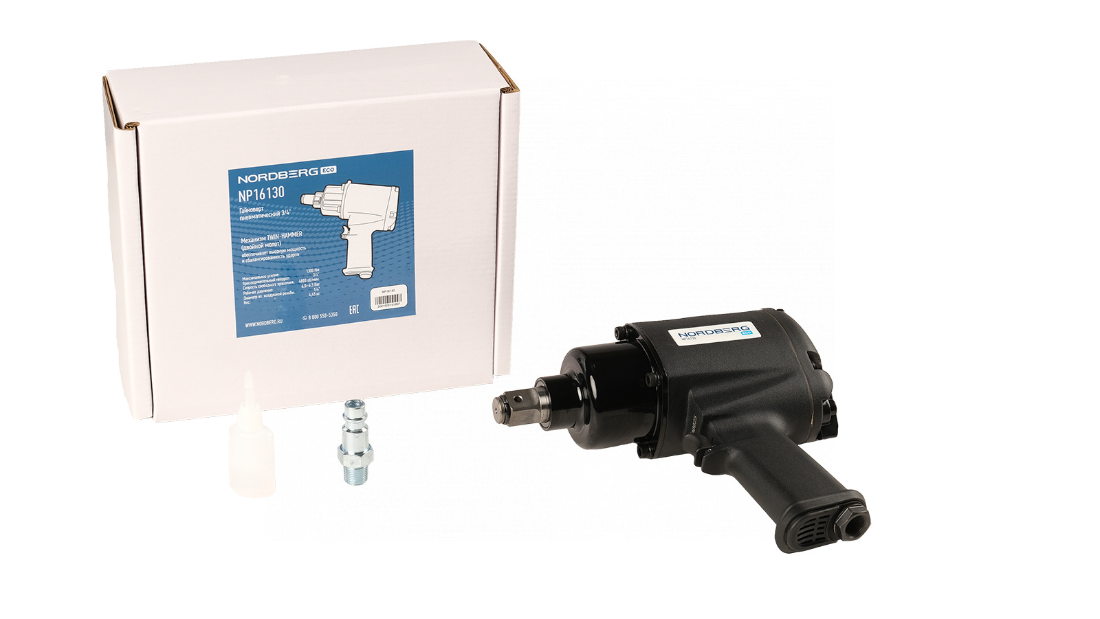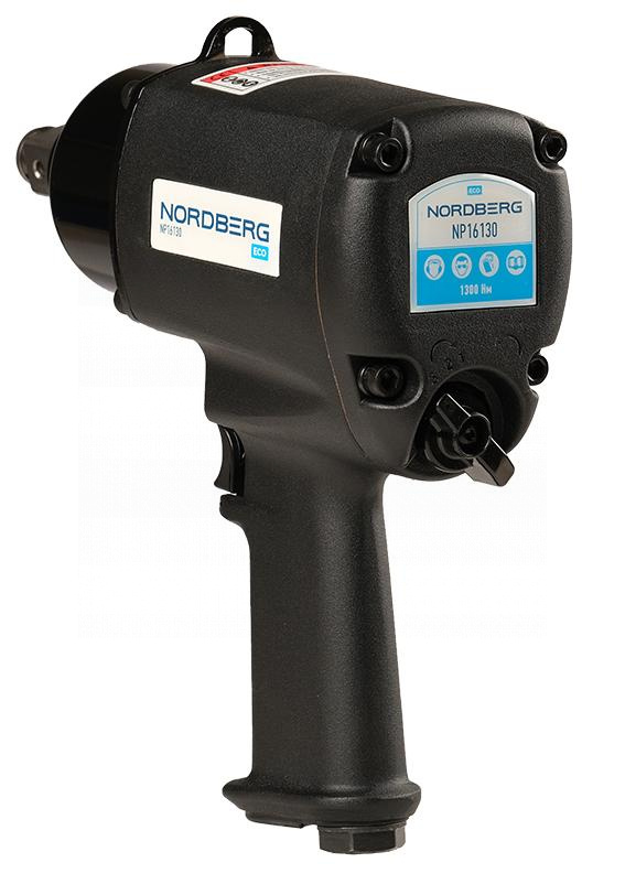 О товаре Пневмогайковерт ударный NORDBERG NP16130 – профессиональное пневматическое оборудование для автосервисов, станций шиномонтажа и автотранспортных предприятий. ФУНКЦИОНАЛ Предназначен для работы с резьбовыми соединениями при проведении ремонтных работ, связанных с откручиванием и закручиванием гаек и болтов, а также других крепежных элементов в грузовом шиномонтаже, автосервисах, а также для промышленного применения. ПРЕИМУЩЕСТВА Флажковый переключатель реверса и регулировки момента затяжки повышает комфорт при эксплуатации гайковерта Система TWIN-HAMMER (двойной молот), обеспечивающая высокую мощность и сбалансированность ударов Выброс воздуха направлен вниз, что предотвращает попадания паров масла на рабочую поверхность УДОБСТВО ИСПОЛЬЗОВАНИЯ Эргономичная продуманная конструкция для удобного удерживания инструмента в руках и простой механизм включения и работы. КОМПЛЕКТАЦИЯ Ударный пневмогайковерт NORDBERG NP16130 Паспорт-инструкция Пневматический гайковерт NORDBERG NP16130 позволит проводить эффективную, быструю и качественную работу при шиномонтажных и ремонтных операциях с автомобилем. Показать полностью Скрыть Характеристики Диаметр впускного отверстия, дюйм 3/8 Посадочный квадрат, дюйм 3/4 Максимальное усилие, Нм 1300 Рабочее давление, бар 6 Скорость свободного вращения, об/мин 4800 Среднее потребление воздуха, л/мин 196 Исполнение стандартный Регулировка момента затяжки есть Тип ударного механизма TWIN-HAMMER **Габариты и вес товара с упаковкой Общий вес с упаковкой - 5.1 кг Упаковка Размеры упаковки (Д*Ш*В), мм Вес, кг Упаковка №1 280 x 235 x 95 5.1 ** Теоретический вес