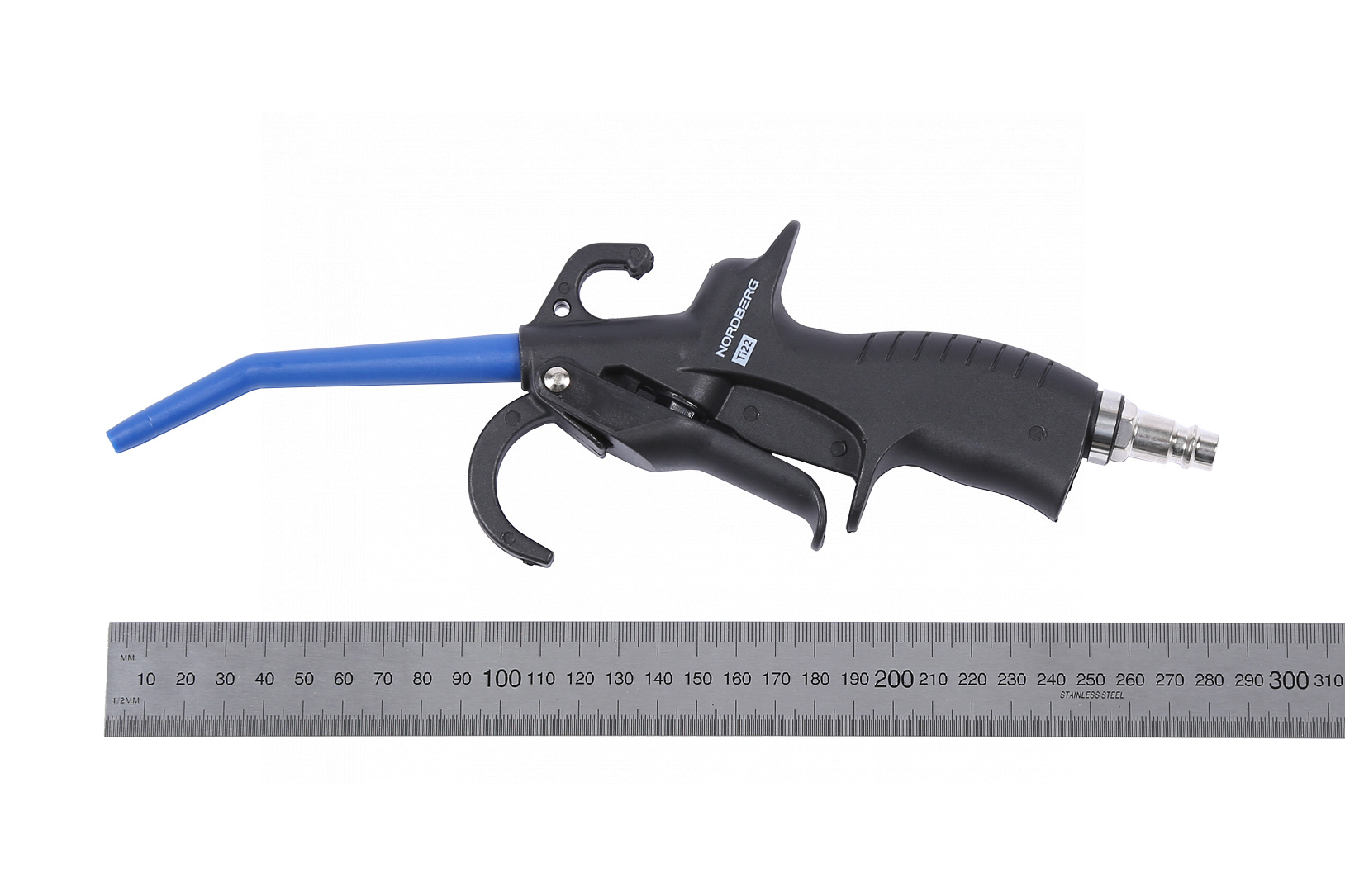 О товаре NORDBERG Ti22 — композитный продувочный пистолет для очистки поверхностей и продувки оборудования. Применяется на СТО, шиномонтажах и в бытовых условиях. ФУНКЦИОНАЛ Предназначен для удаления пыли, грязи и мелких частиц из труднодоступных мест. Также используется для подготовки поверхностей перед нанесением краски или других покрытий. ПРЕИМУЩЕСТВА Рабочее давление — до 8 бар — эффективная и стабильная работа, Расход воздуха — 350 л/мин — высокая производительность при любых задачах, Пластиковый носик — не царапает покрытие и безопасен при работе с кузовными элементами, Быстрое подключение — в комплекте переходник ЕВРО 1/4″. УДОБСТВО ИСПОЛЬЗОВАНИЯ Удобная рукоятка с курком — простое управление одной рукой, Компактный размер — не занимает лишнего места на рабочем месте, Легкий корпус из композитных материалов — устойчивость к повреждениям и коррозии, Быстрое подключение к стандартной пневмолинии — сразу готов к работе без лишних настроек. КОМПЛЕКТАЦИЯ Пистолет продувочный композитный — 1 шт, Переходник ЕВРО 1/4″ — 1 шт, Паспорт-инструкция — 1 шт. NORDBERG Ti22 — выбор профессионалов, которым важны надёжность, удобство и высокая производительность в работе. Показать полностью Скрыть Характеристики Рабочее давление, бар 8 Материал композит Диаметр впускного отверстия, дюйм 1/4 Среднее потребление воздуха,, л/мин 350 Длина сопла, мм 110 Эргономичная пластиковая ручка есть **Габариты и вес товара с упаковкой Общий вес с упаковкой - 1.2 кг Упаковка Размеры упаковки (Д*Ш*В), мм Вес, кг Упаковка №1 330 x 150 x 30 1.2 ** Теоретический вес