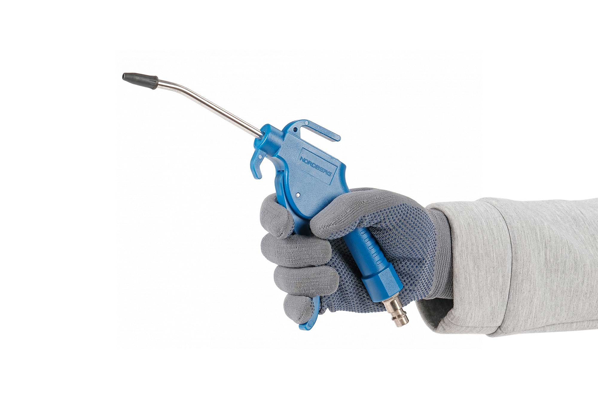О товаре Продувочный пластиковый пистолет NORDBERG Ti20 – пневматический инструмент для очистки автомобильных деталей при проведении ремонтных работ в автосервисах, СТО, гаражах. ФУНКЦИОНАЛ С помощью потока сжатого воздуха происходит выдувание пыли и мелких загрязнений с деталей автомобиля и различных поверхностей. ПРЕИМУЩЕСТВА Высокая производительность Ударопрочный корпус Специальная конусообразная насадка для очистки труднодоступных мест УДОБСТВО ИСПОЛЬЗОВАНИЯ Эргономичная рукоятка с клавишей пуска и небольшой вес позволяют удобно держать продувочный пистолет в руках УНИВЕРСАЛЬНОСТЬ Продувочные пистолеты могут применяться при работах в автомастерских, так и использоваться в строительных и ремонтно-отделочных работах. КОМПЛЕКТАЦИЯ Продувочный пистолет NORDBERG Ti20 Пневматический пистолет NORDBERG Ti20 – универсальное решение как для профессионального, так и бытового использования. Показать полностью Скрыть Характеристики Рабочее давление, бар 8 Материал нейлон Диаметр впускного отверстия, дюйм 1/4 Среднее потребление воздуха, л/мин 170 Длина сопла, мм 100 **Габариты и вес товара с упаковкой Общий вес с упаковкой - 0.14 кг Упаковка Размеры упаковки (Д*Ш*В), мм Вес, кг Упаковка №1 30 x 130 x 290 0.14 ** Теоретический вес